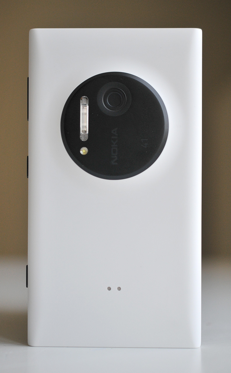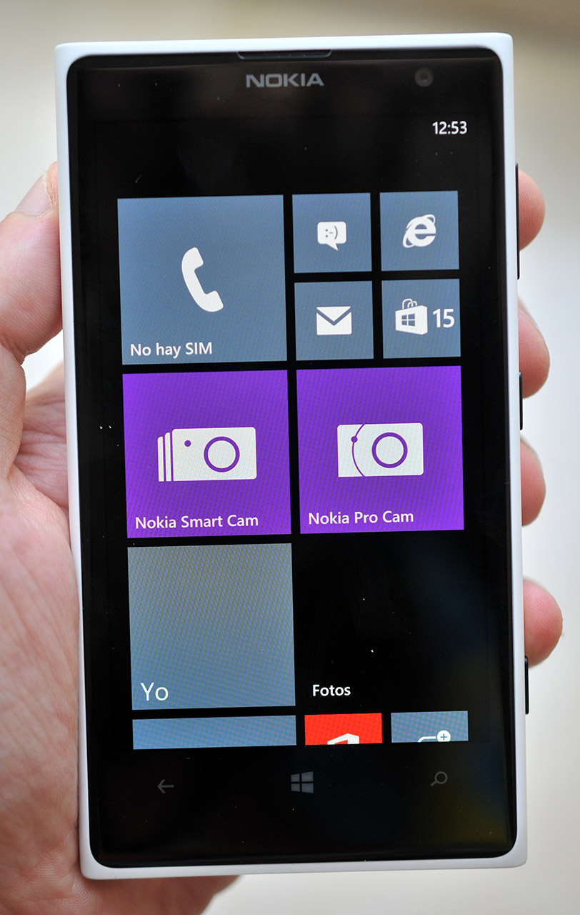 A diferencia de otros teléfonos, al apoyar el Nokia Lumia 1020 sobre la parte de atrás, la pantalla no queda horizontal sino inclinada. En principio esto no es malo, más aún, si tenemos el teléfono apoyado en la mesa de trabajo, podemos ver las notificaciones de forma más sencilla.