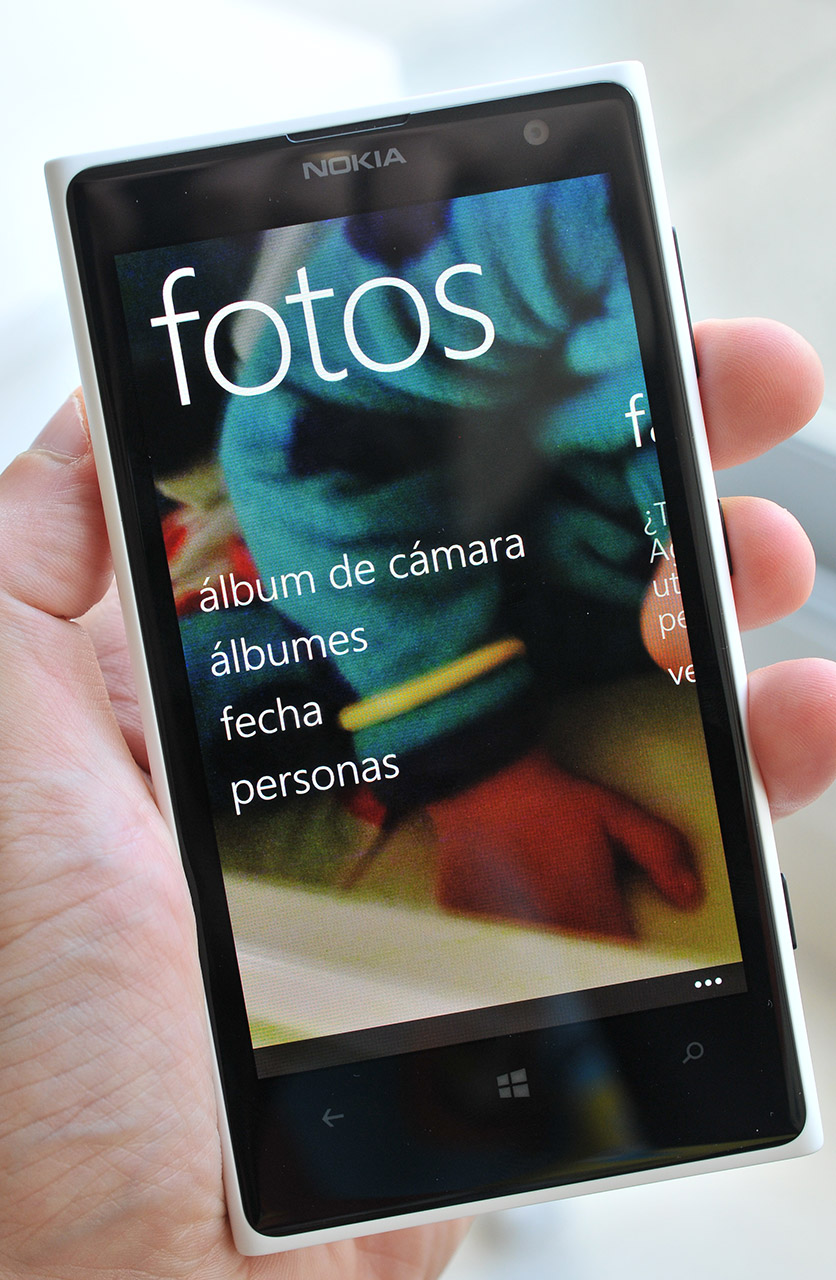 En el apartado de reproducción de imágenes, Nokia incorpora su aplicación Fotos que organiza las imágenes en diversos álbumes – álbum de cámara, imágenes de Skydrive, etc. – así como por fecha y persona. Permite incluso realizar algunas ediciones básicas sobre las imágenes como recorte, giro y corrección automática.
