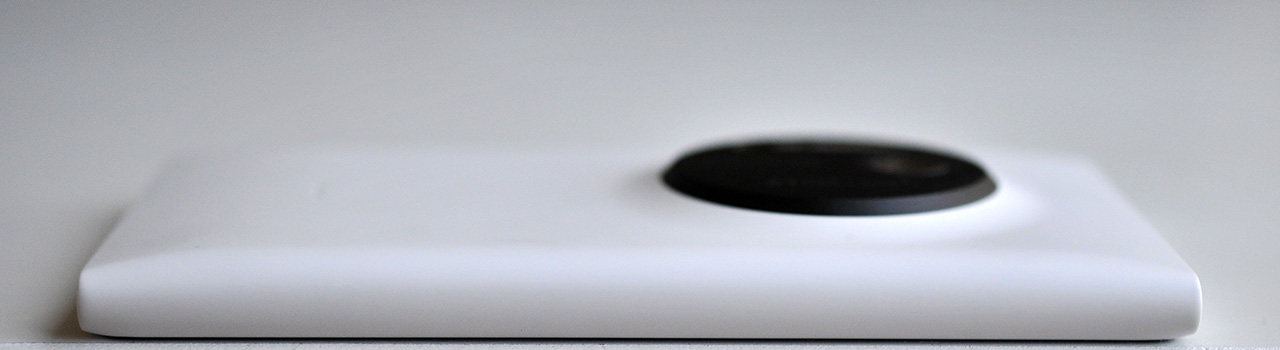 Pesa 158 gramos y sus dimensiones oficiales son 130 x 71 x 10,4 mm. Sin embargo, estas medidas no tienen en cuenta la protuberancia de la cámara, que añade unos 4 mm adicionales y coloca al Nokia Lumia 1020 en unos 14,5 mm de grosor. En comparación con otros teléfonos, el Nokia Lumia 1020 se nota algo más grande y más grueso, especialmente si lo transportamos en un bolsillo de un pantalón.