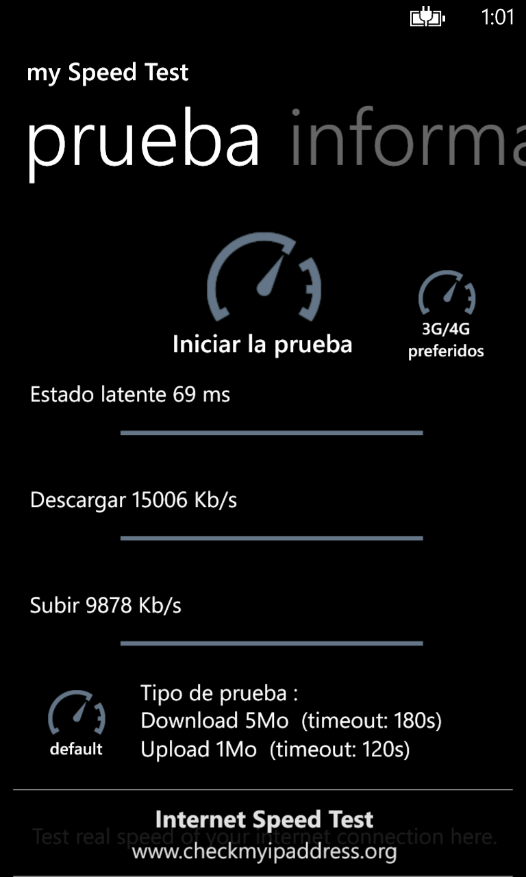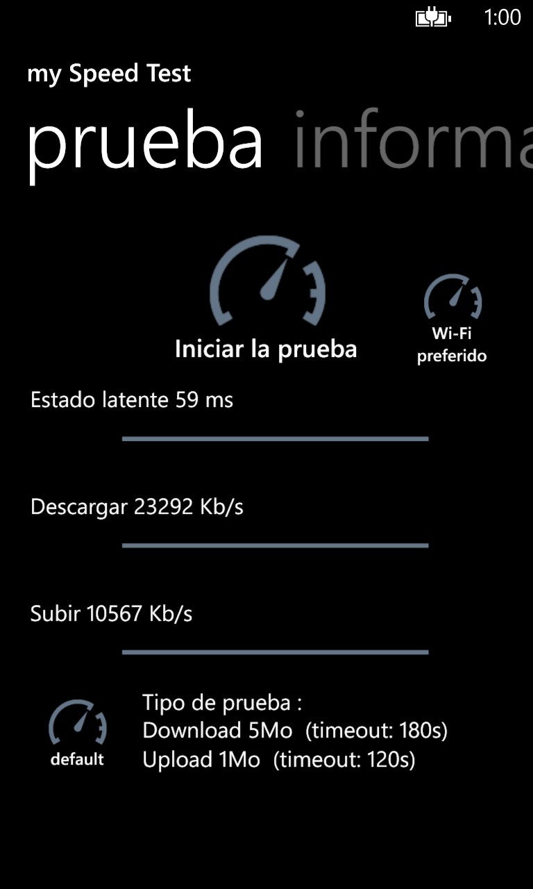Las pruebas de velocidad alcanzaron 23 Mbps de bajada y 10 Mbps de subida en Wi-Fi con una conexión de fibra óptica de ONO, y 15 Mbps de bajada y 9,9 Mbps de subida con una conexión 4G de Vodafone.