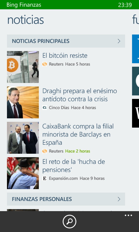 - Búsqueda Visual, que lee códigos de barras, códigos QR, Microsoft Tags, libros, CDs y DVDs.
