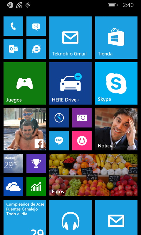 Sin embargo, el Nokia Lumia 630 tiene una resolución tan baja que al poner tres columnas las baldosas se ven realmente pequeñas, por lo que resulta más recomendable mantener dos columnas.