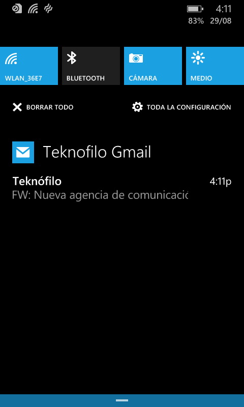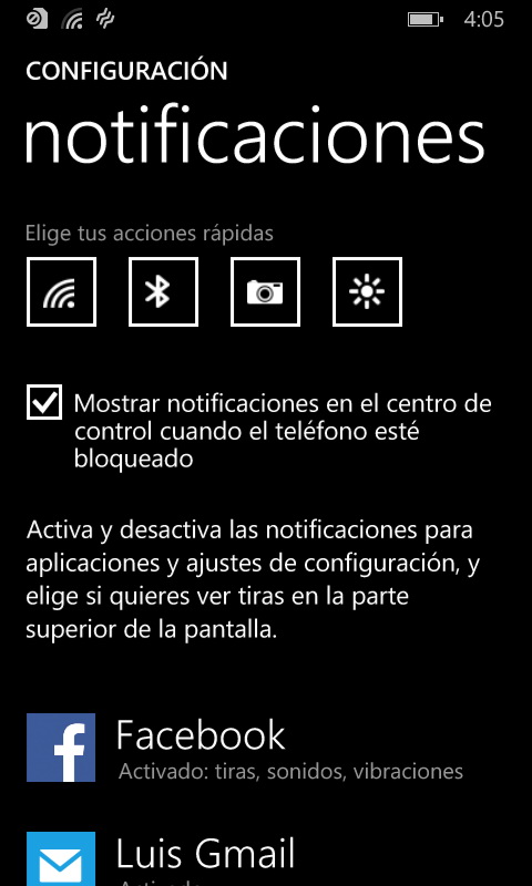 Windows Phone 8.1 también incorpora un panel de notificaciones que se accede arrastrando la pantalla hacia abajo desde la parte superior. La aproximación que ha seguido Windows Phone es similar a Android.