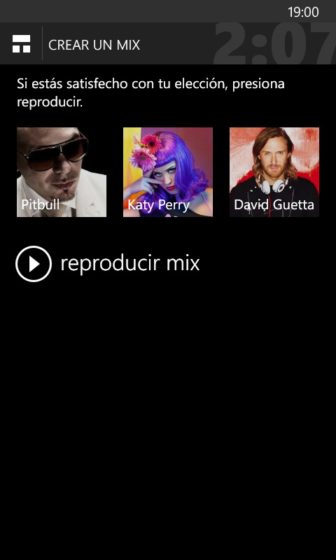 Por otro lado Nokia MixRadio puede crear mezclas personalizados con canciones similares a las de nuestros artistas favoritos. Para ello podemos indicar hasta tres artistas diferentes y la aplicación genera una mezcla automáticamente con canciones de otros artistas.