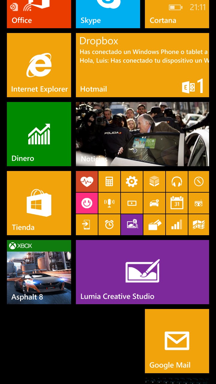 Por defecto el Lumia 830 muestra tres columnas de baldosas y, gracias a su elevada resolución, se ven perfectamente.