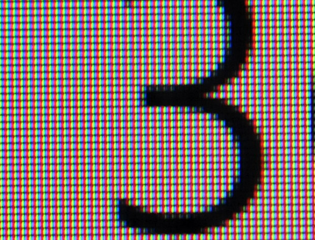 La pantalla del Nokia Lumia 830 utiliza una matriz RGB-RGB, con sub-píxeles rojos, verdes y azules colocados en hileras, como puede apreciarse en la imagen.