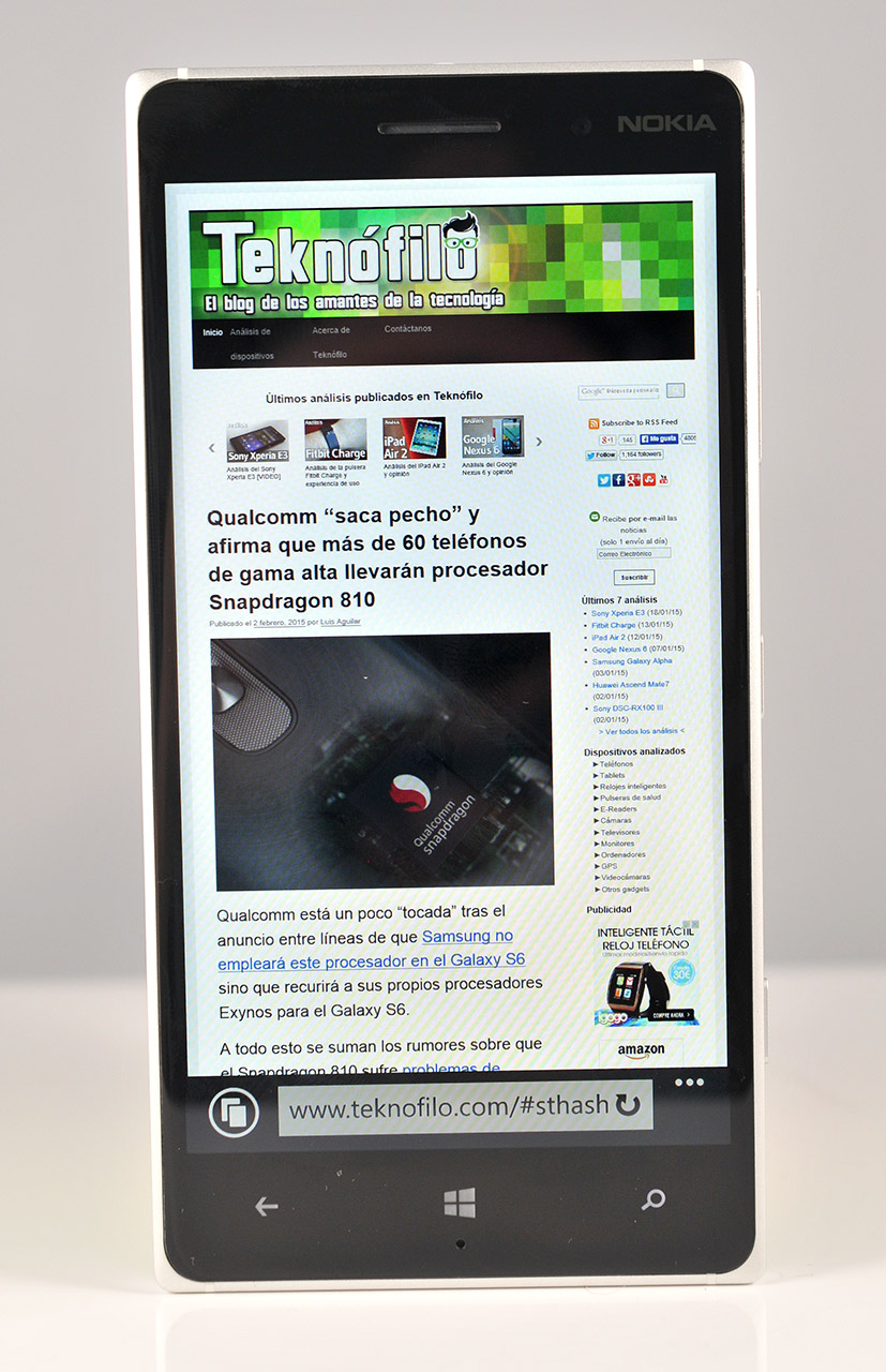 Su pantalla de 5″ es perfectamente adecuada para la mayor parte de los usos, aunque no es tan espectacular como la del Lumia 930 debido a su menor resolución y al uso de un panel LCD en lugar de AMOLED. Como hemos comentado en el análisis, Windows Phone es un sistema operativo que «brilla» especialmente en pantallas AMOLED gracias a su colorido interfaz.