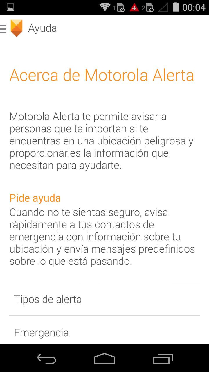 Motorola Alerta te permite avisar rápidamente a tus contactos y a los servicios de emergencia locales en caso de que estés en peligro, y enviarles información que necesitan para ayudarte. También puede realizar un seguimiento de cuándo abandonas o llegas a un lugar al que acudes con frecuencia y avisar automáticamente a los contactos escogidos.