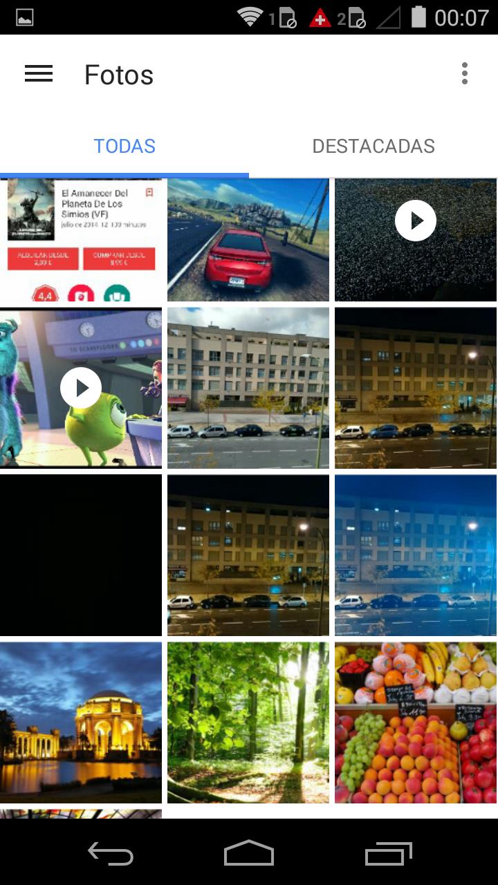 Google incorpora también una aplicación llamada Fotos que permite visualizar fotografías e incluso realizar copias de seguridad de las mismas en tu cuenta de Google. Las opciones de edición de fotos, sin embargo, son menores que en la aplicación Galería.