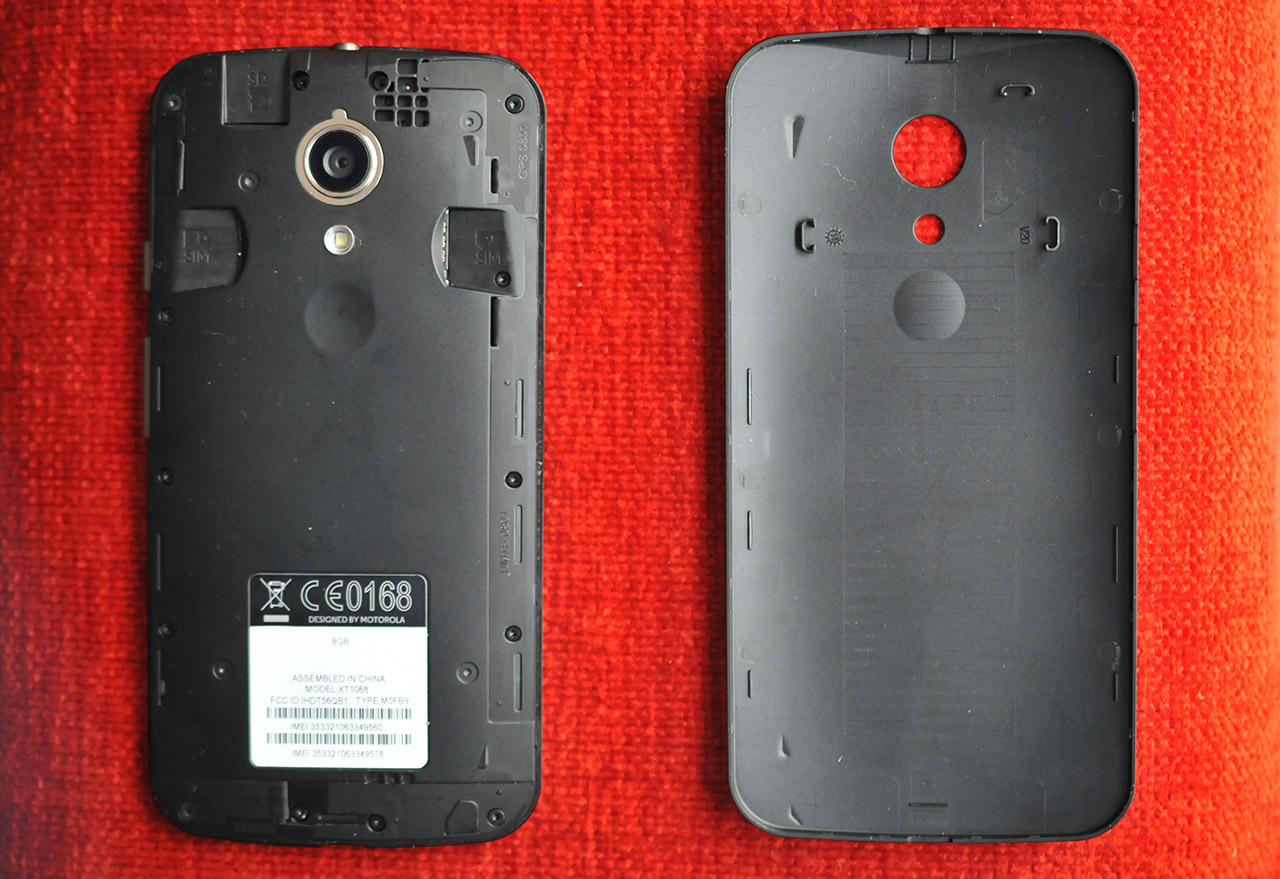 En el interior del teléfono encontramos dos ranuras para tarjetas micro-SIM y una ranura para tarjeta micro-SD. Como hemos comentado anteriormente la carcasa trasera puede ser sustituida por otras que comercializa Motorola en variados colores. La batería no puede extraerse, como ya ocurría en el Moto G.