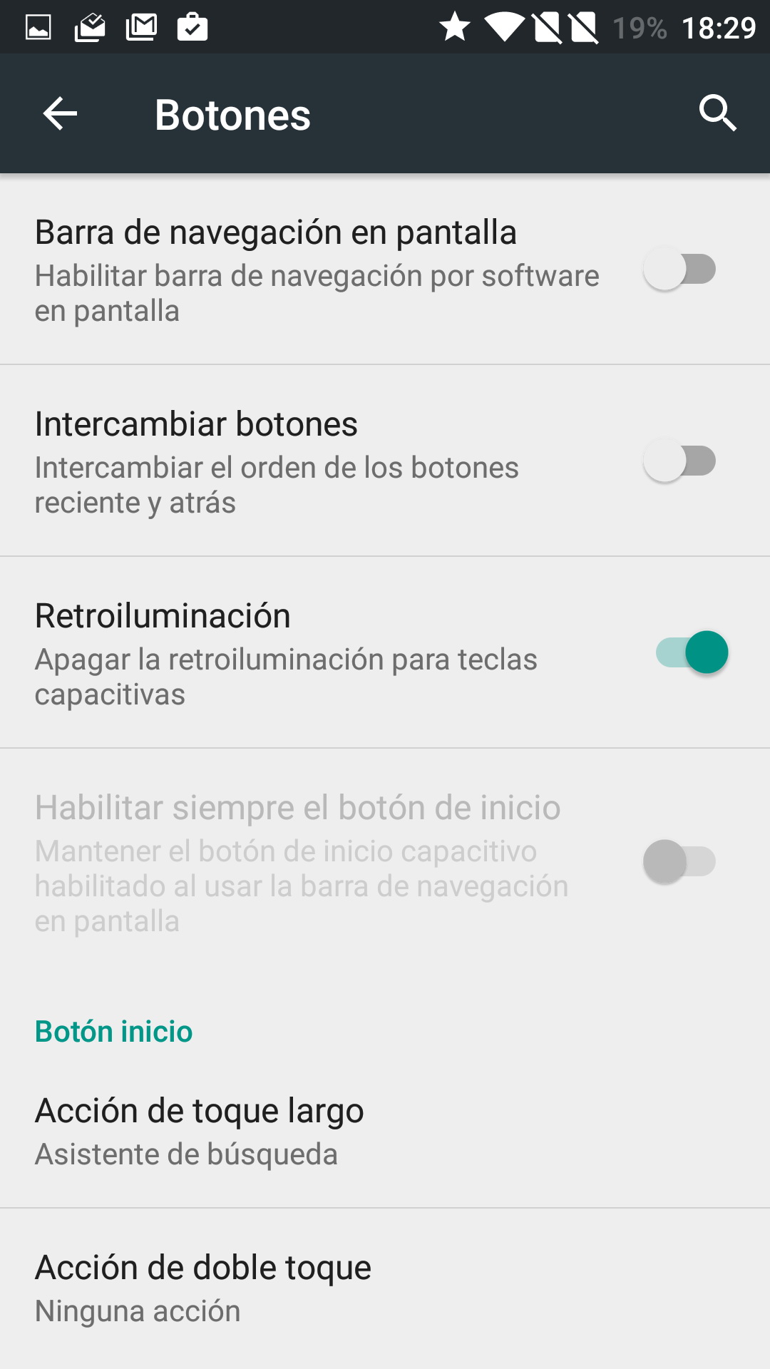 Es posible intercambiar la función de los botones a través de los ajustes del teléfono, así como habilitar una barra de navegación en pantalla si preferimos utilizar botones virtuales.