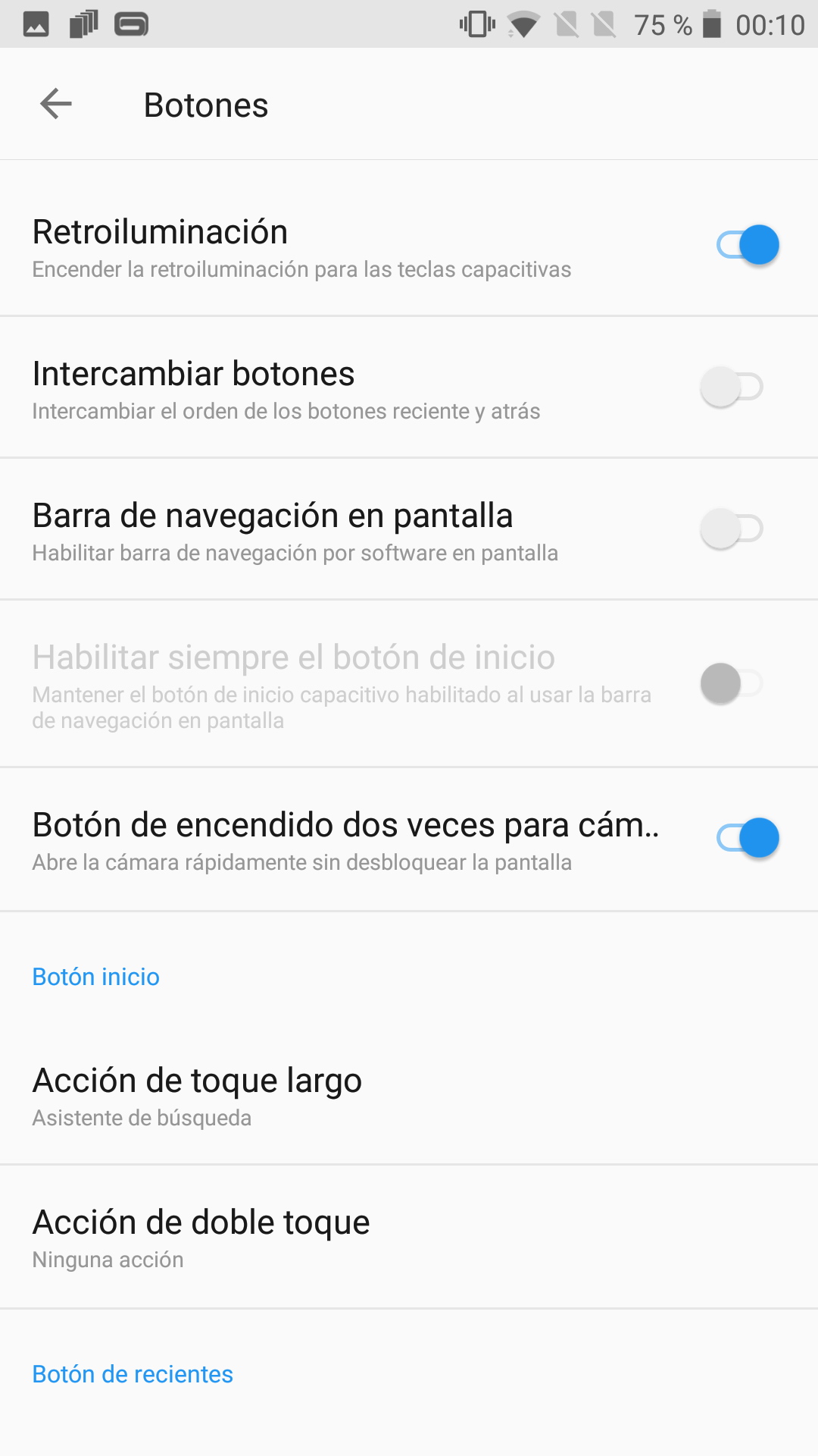 Es posible intercambiar la función de los botones a través de los ajustes del teléfono, así como habilitar una barra de navegación en pantalla si preferimos utilizar botones virtuales. Ahora bien, teniendo botones físicos no vemos mucho sentido a desperdiciar una parte de la pantalla con una botonera virtual.