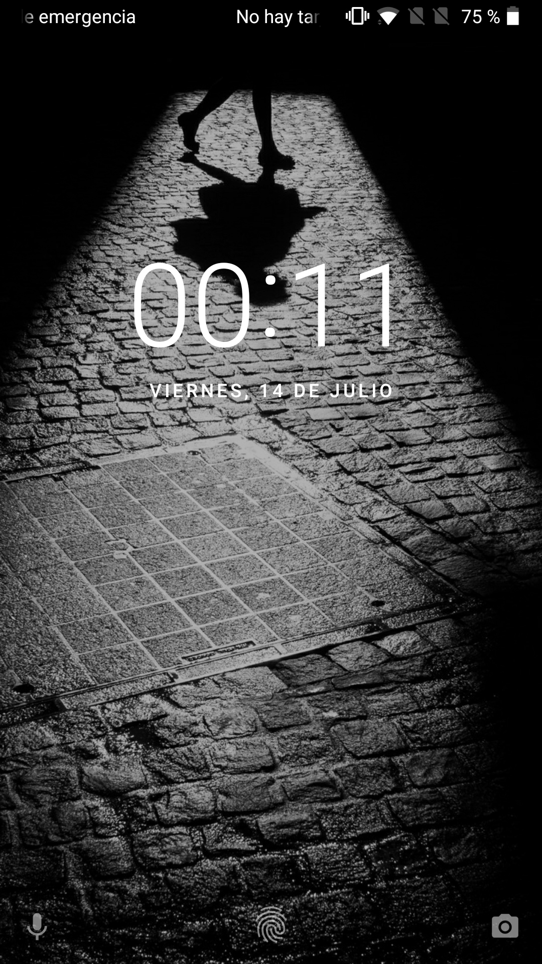 La pantalla de bloqueo muestra la hora y ofrece un acceso rápido a la cámara arrastrando la pantalla desde la esquina inferior derecha hacia arriba. No podemos colocar widgets en la pantalla de bloqueo, aunque sí que podemos eliminar notificaciones desde ahí.