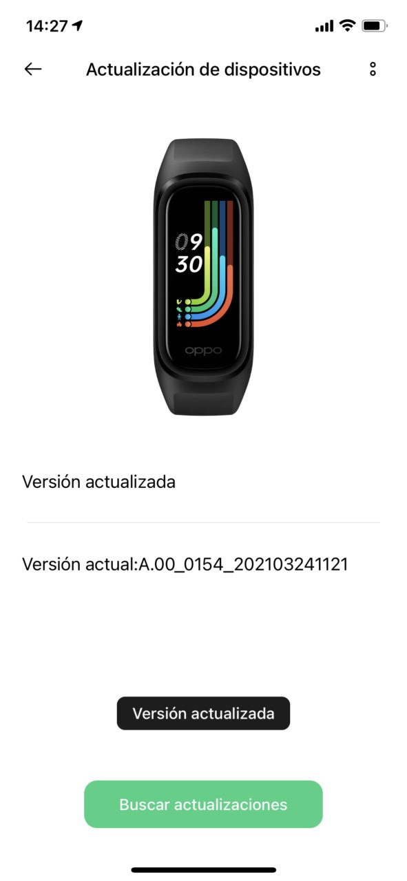 - Actualización del dispositivo para actualizar el firmware de la pulsera