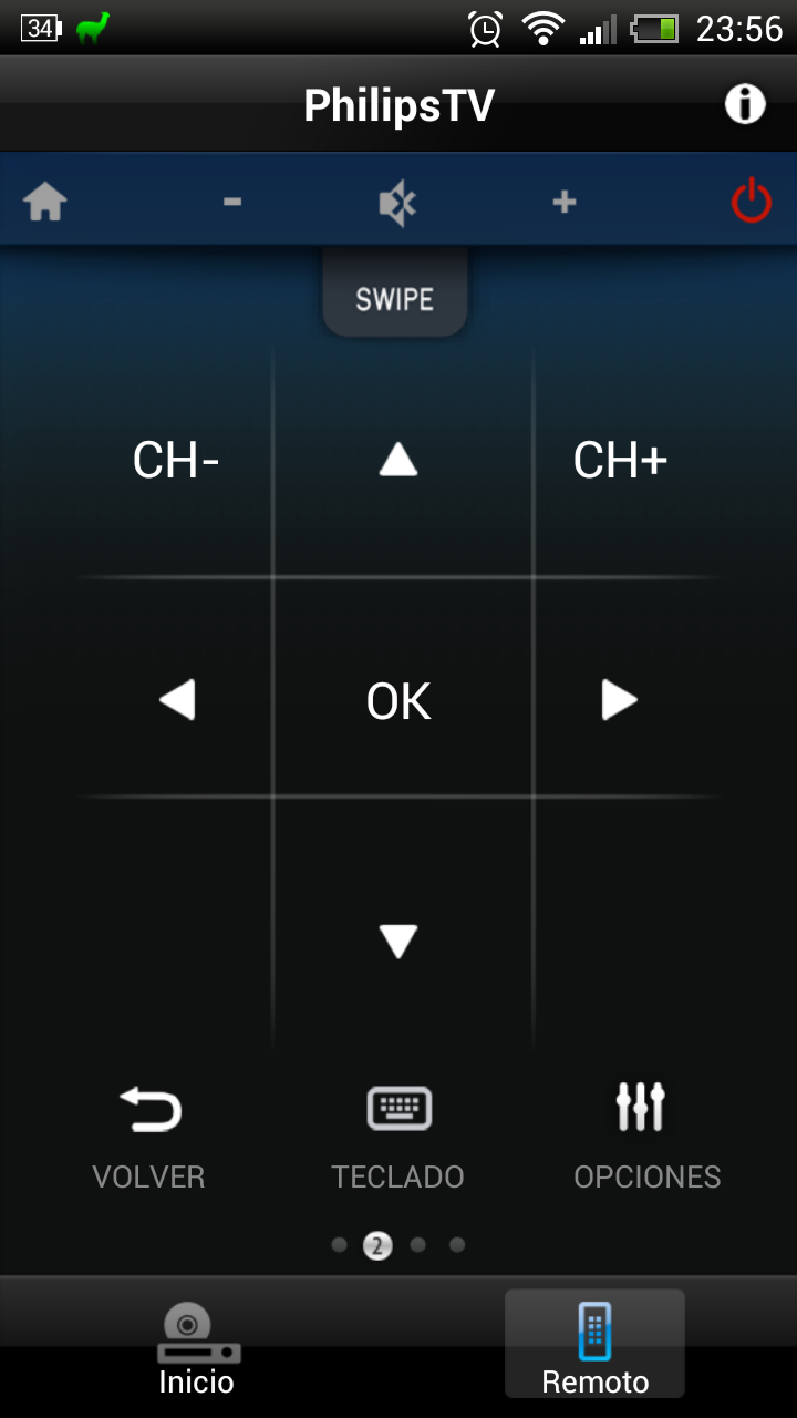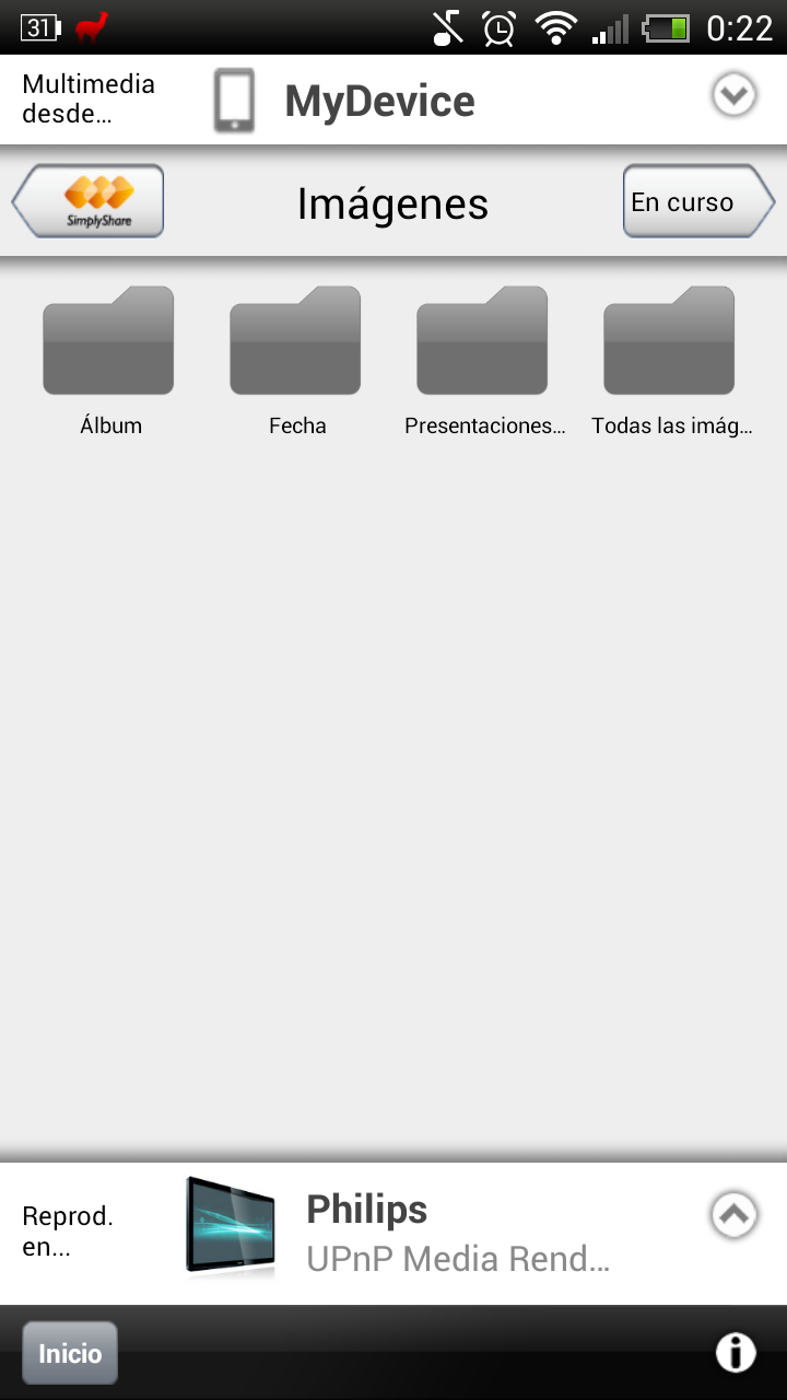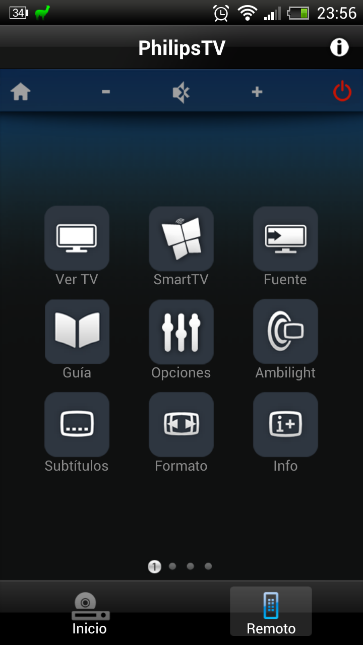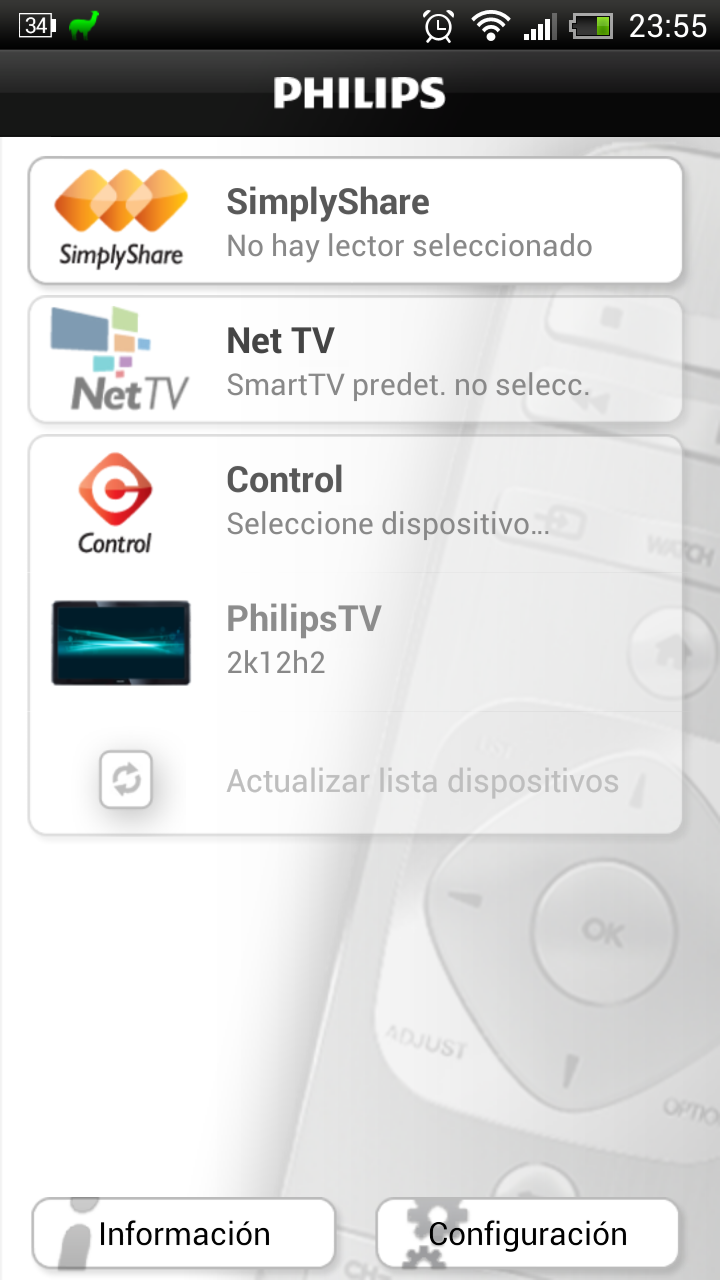 Además de reproducir contenidos almacenados en discos en red, es posible enviar un contenido desde un teléfono móvil o tablet al televisor Philips mediante la instalación de la aplicación MyRemote, disponible tanto en Android como en iOS. A continuación mostramos varias capturas de pantalla de un teléfono HTC One X+ enviando contenidos al televisor.