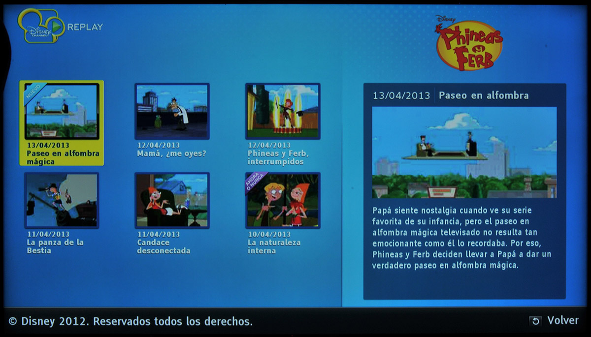 La aplicación Disney Channel permite acceder a vídeos bajo demanda de dibujos animados y otras series juveniles, que se reproducen perfectamente en el televisor.