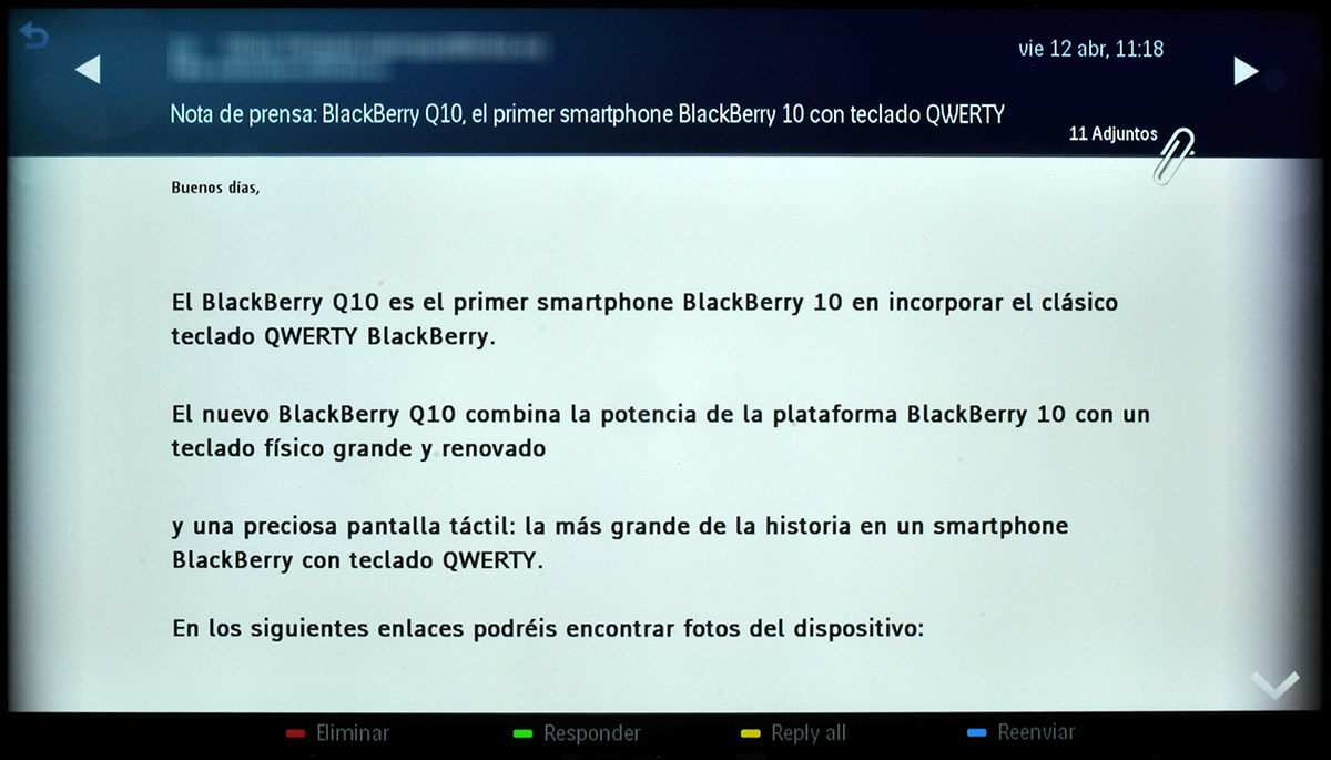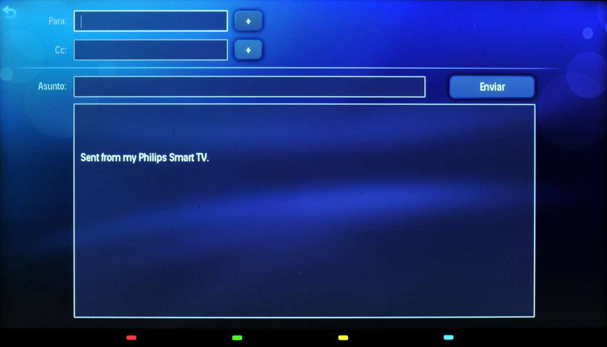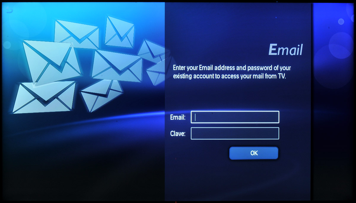 Sin duda la aplicación que nos ha parecido más interesante y novedosa es la de Email, que permite configurar una cuenta de correo electrónico para leer e incluso enviar mensajes de correo electrónico desde la televisión.