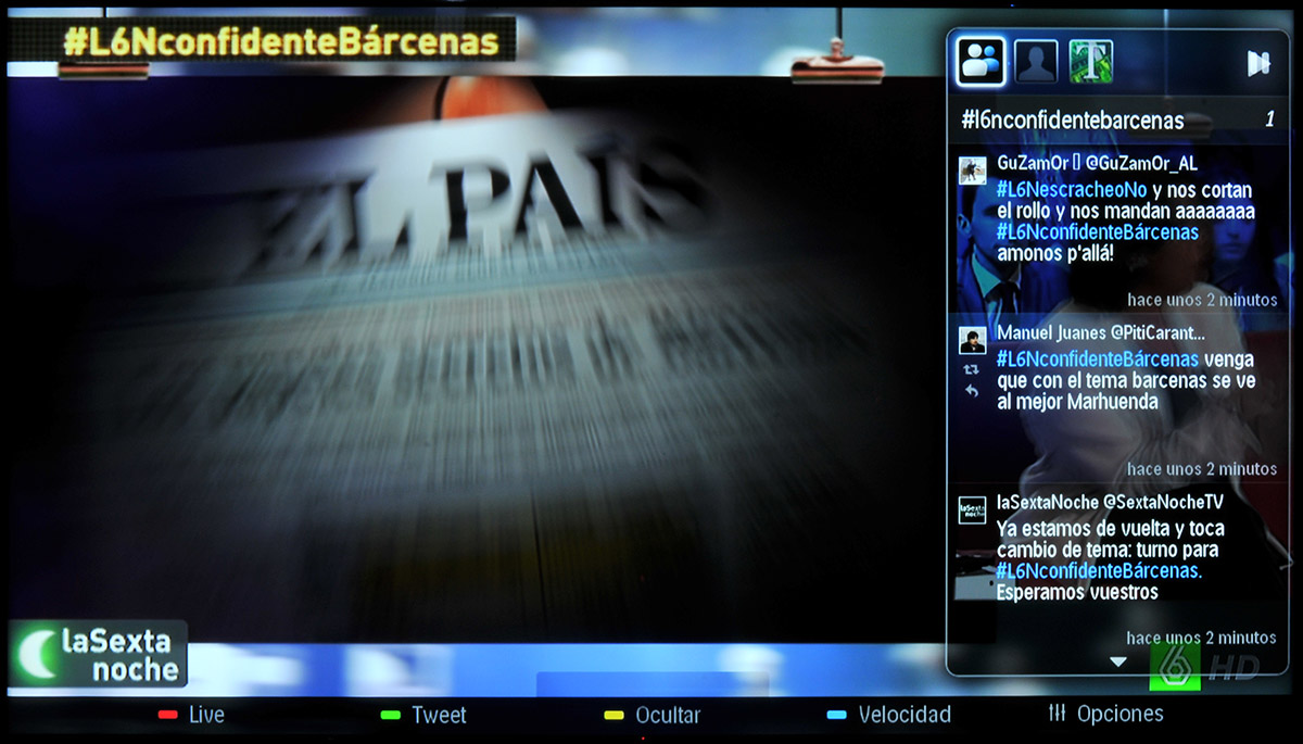 Un aspecto que nos ha gustado de Social TV es que es posible establecer un hashtag para que sólo se muestren los tweets que lo contengan, y que este hashtag sea añadido automáticamente a cualquier nuevo tweet. Esto es especialmente útil para hacer comentarios sobre programas de televisión que difunden un hashtag en particular.