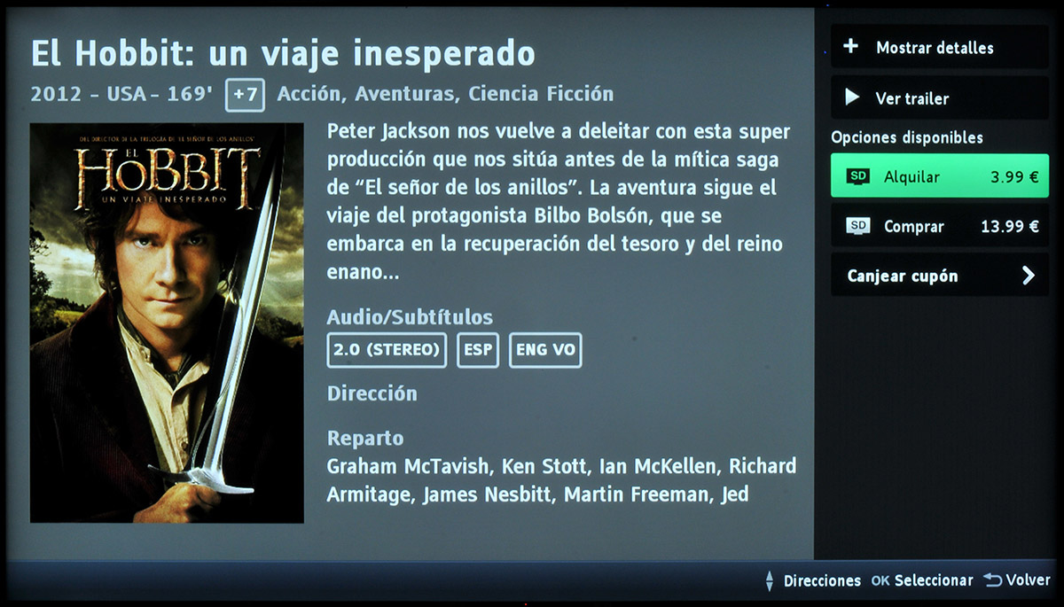 La información adicional que se muestra sobre cada película o serie compartida vía Plesk en el televisor Philips es muy escasa. En cualquier caso, la reproducción funcionó correctamente, que es lo realmente importante.