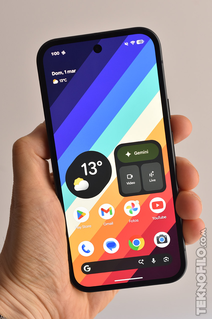 La primera mejora que más se nota frente al Pixel 9a es la pantalla. Este panel OLED de 6,3″ a 120 Hz no solo se ve nítido, sino que en exterior rinde mejor. El extra de brillo (2.100 nits medidos con la pantalla iluminada al 100%), marca diferencia en calles soleadas y, sobre todo, al consultar mapas, fotos o mensajes sin tener que forzar el brillo a tope constantemente.