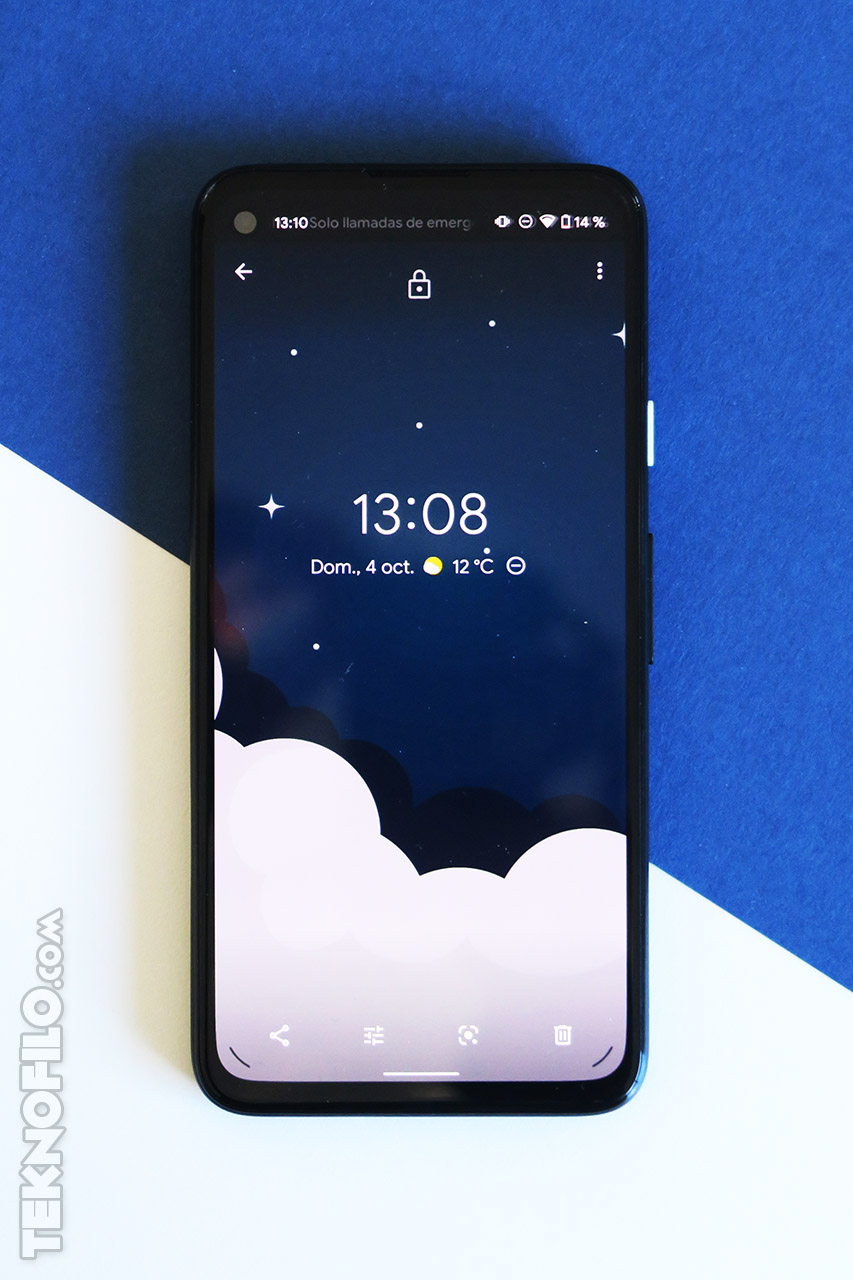 Una característica interesante de la pantalla del Pixel 4a es la función Pantalla Siempre Activa que hace que el teléfono muestre la hora, fecha, temperatura, nivel de batería e iconos de notificación.