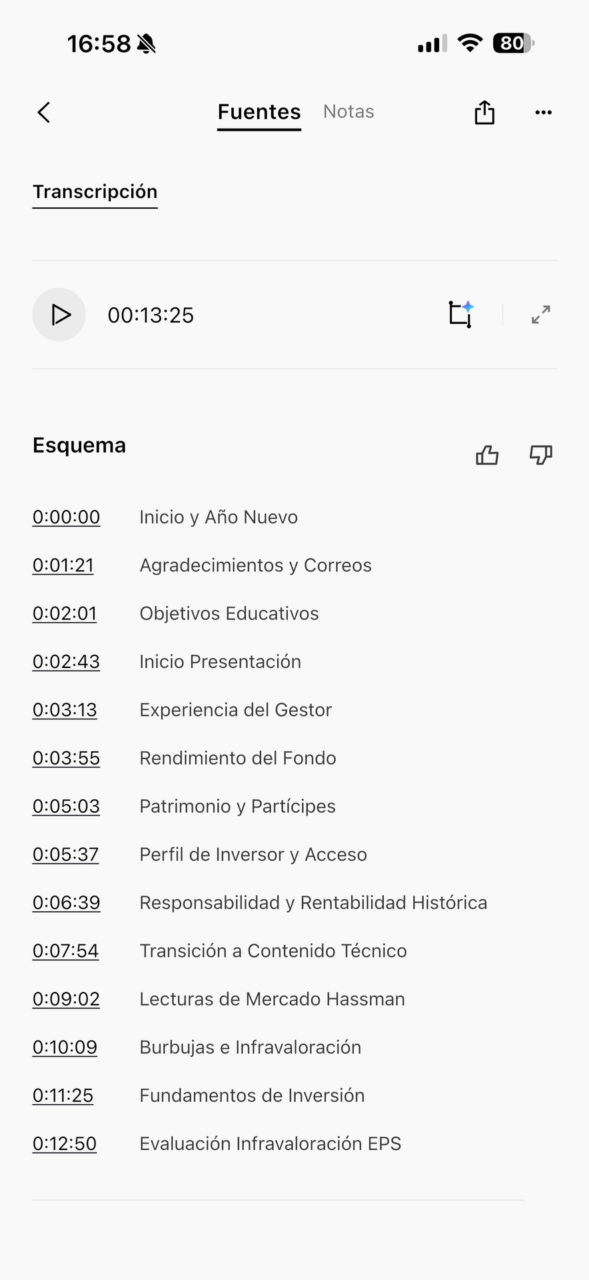 Donde realmente marca la diferencia es en la generación de resúmenes inteligentes. No se limita a transcribir: crea listas de tareas pendientes, decisiones clave, minutas detalladas, un mapa mental y más que permiten entender una reunión de 45 minutos en apenas un par de minutos de lectura.