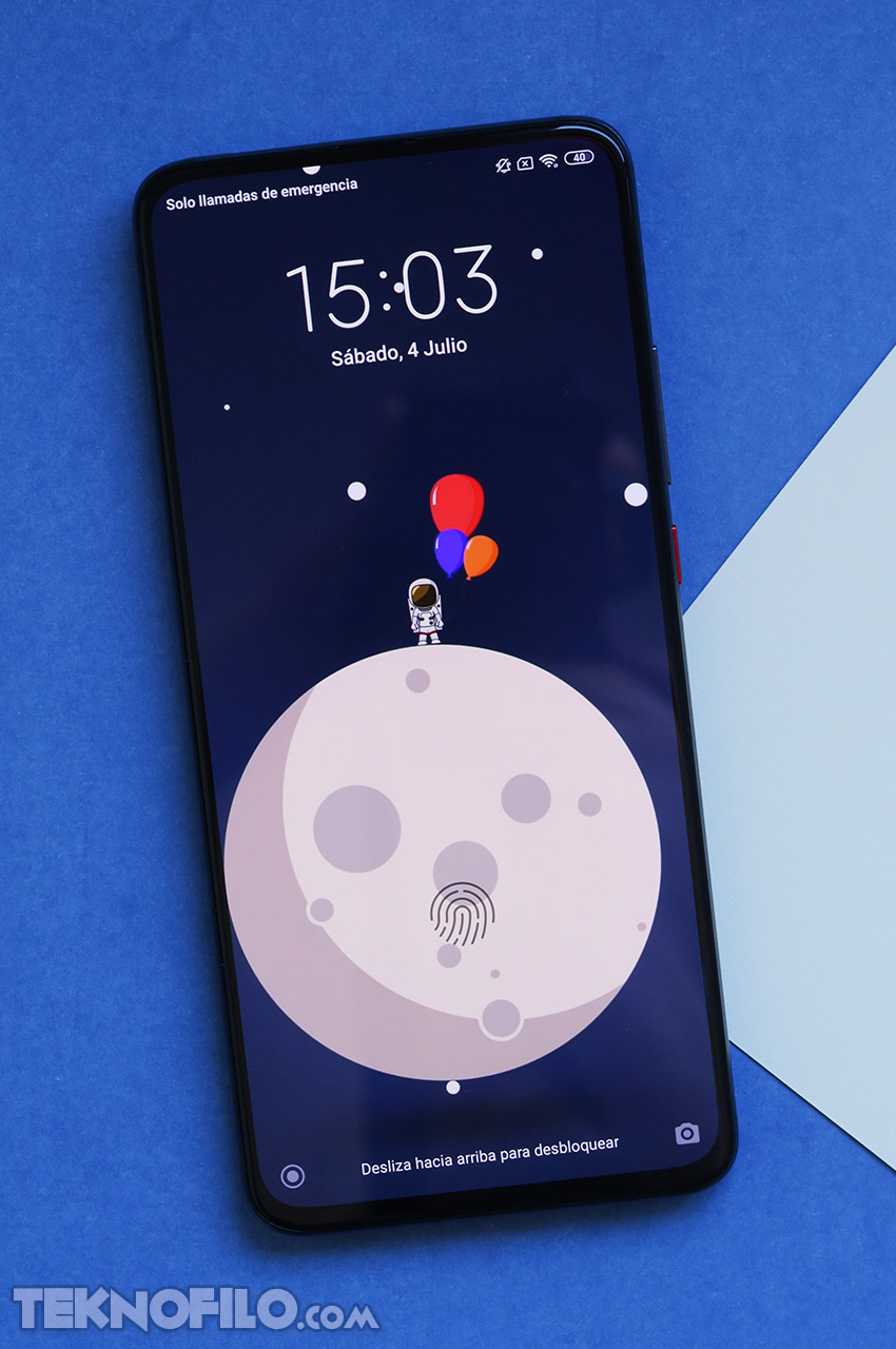 Xiaomi ha integrado un lector de huella dactilar debajo de la pantalla que desbloquea el teléfono de manera rápida y, en general, bastante fiable. El área de lectura es amplia, por lo que no es necesario que aciertes exactamente con el dedo en el dibujo de la huella. También incorpora reconocimiento facial 2D pero su uso no resulta muy práctico ya que es necesario que la cámara salga para que comience el reconocimiento.