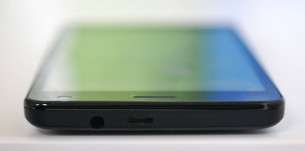 En la parte superior podremos encontrar la entrada de jack 3,5mm y también un puerto micro-USB. No es habitual encontrar el conector micro-USB en dicha ubicación. En la parte inferior del teléfono no encontramos ningún conector.