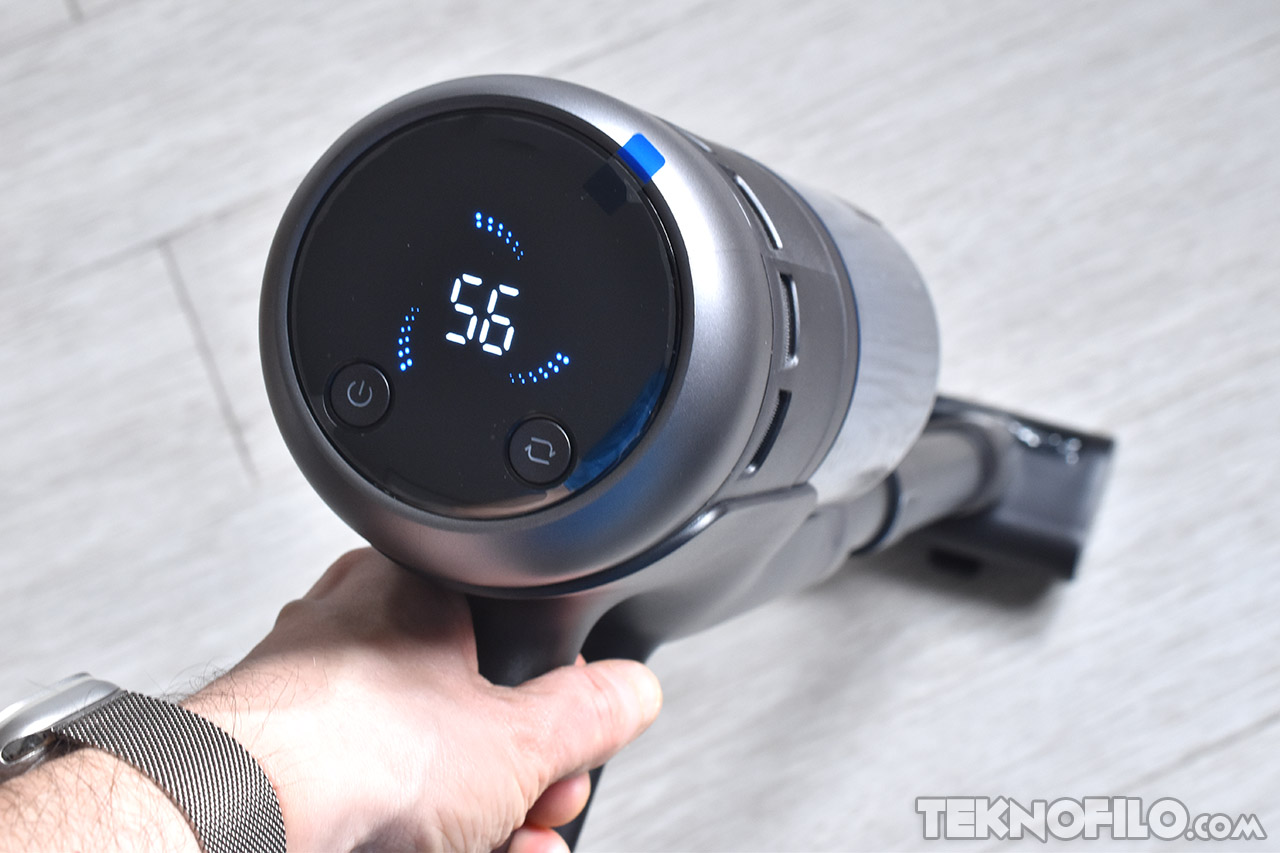 Su potencia es alta y consistente, el cabezal principal funciona bien en múltiples superficies y el sistema antienredos evita tener que parar. Si buscas el aspirado intenso en alfombras, el modo máximo cumple con nota, aunque a costa de una menor autonomía.