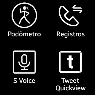 Si arrastramos la pantalla hacia la izquierda van apareciendo las distintas acciones posibles: Notificaciones – S Voice – Nota de voz – Galería – Controlador multimedia – Podómetro – Ajustes – Aplicaciones – Registros – Contactos.