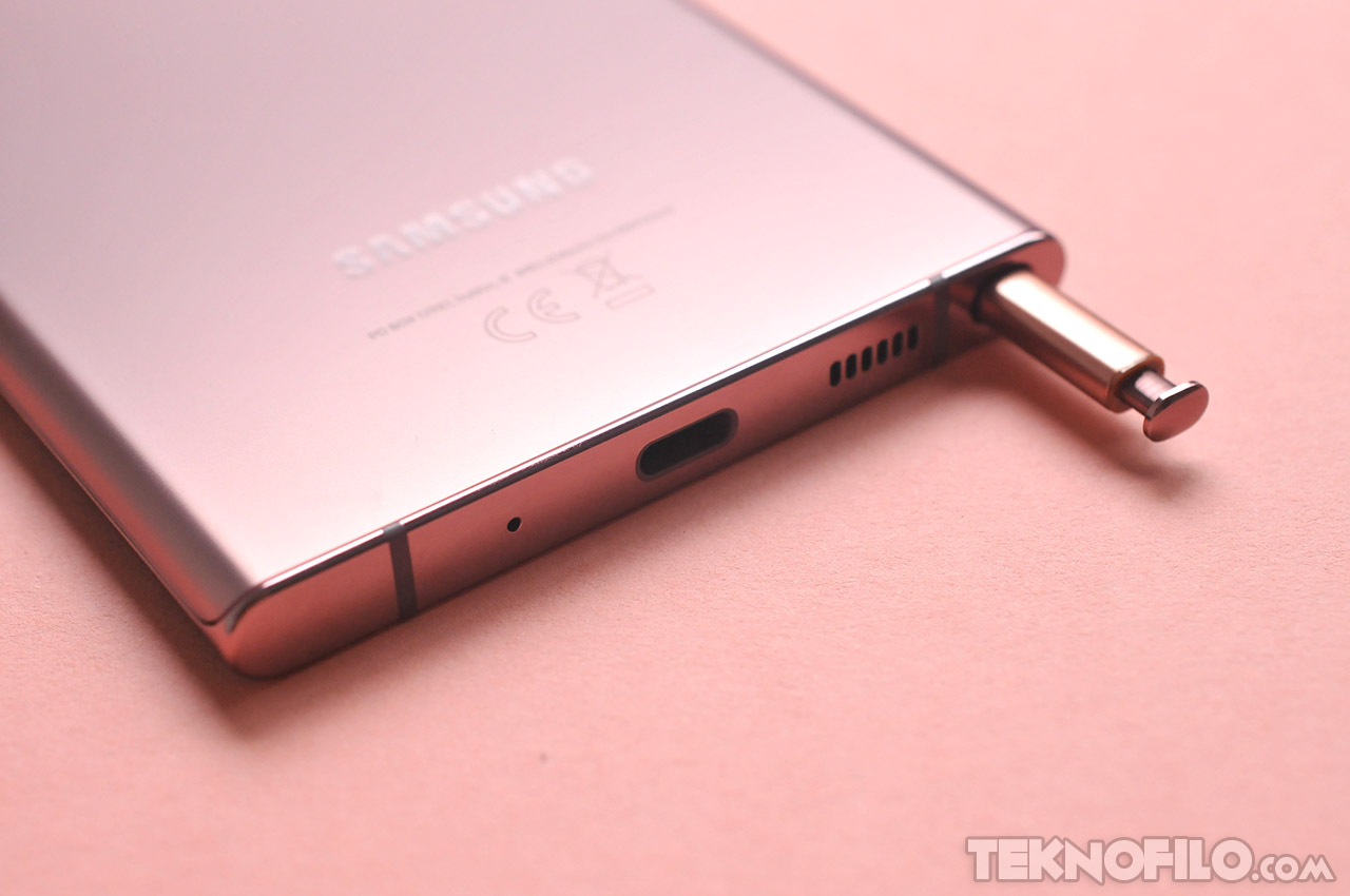 La parte inferior del teléfono alberga un conector USB-C, el altavoz y el compartimento para el puntero S Pen.