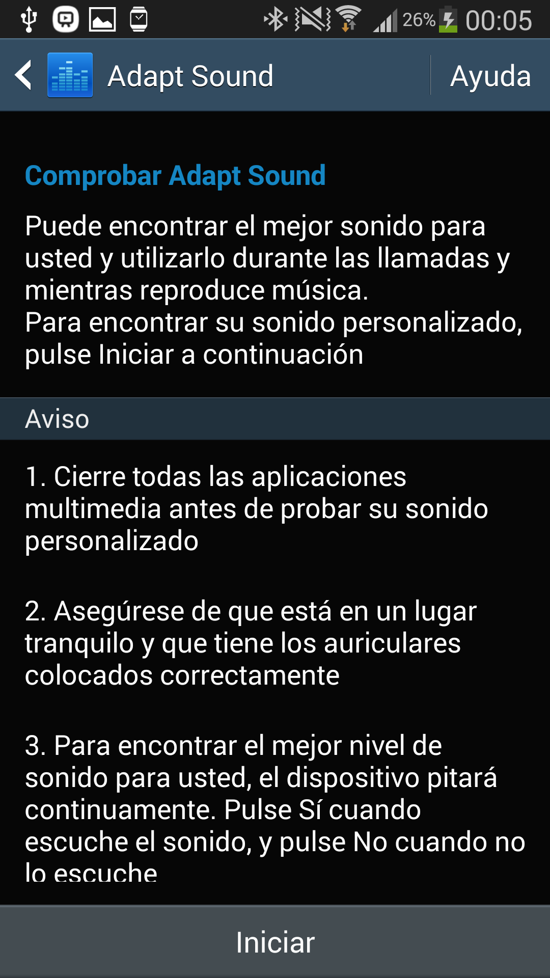 Para ello es necesario calibrar inicialmente el sistema, indicando si escuchas o no diferentes pitidos que van sonando en cada auricular.