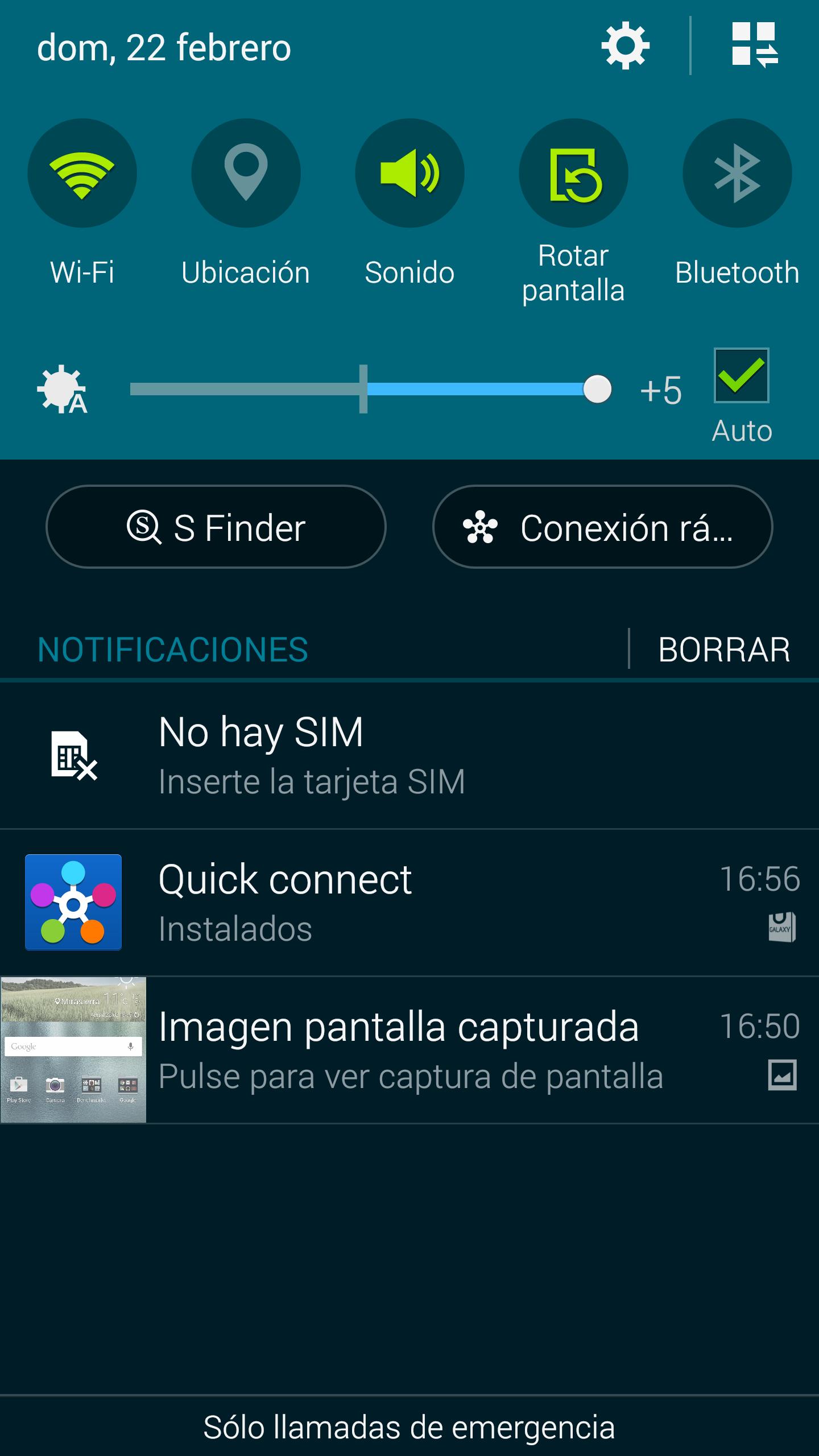 La barra de notificaciones también permite ajustar el brillo de la pantalla, así como acceder a S Finder y Conexión Rápida.