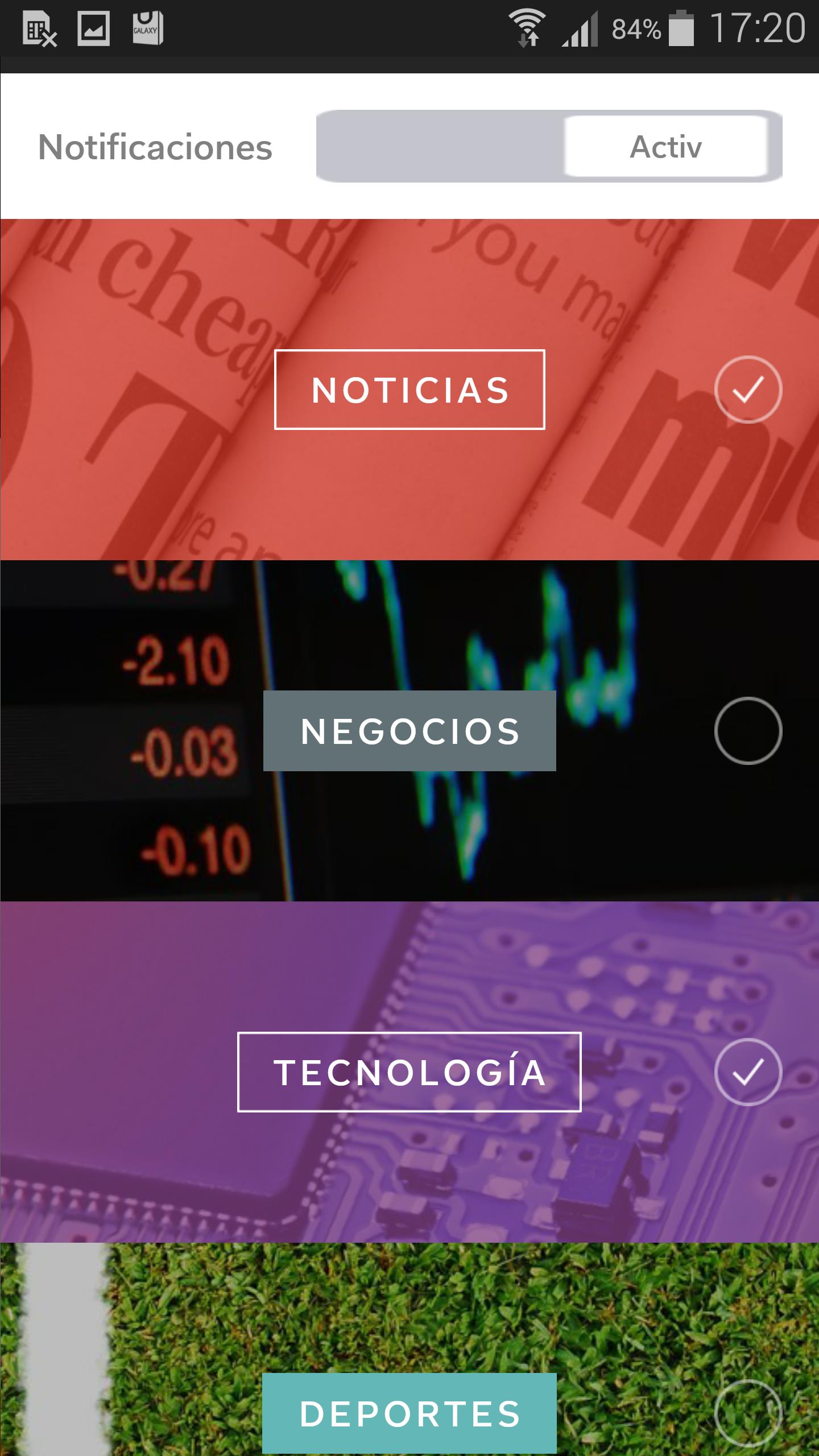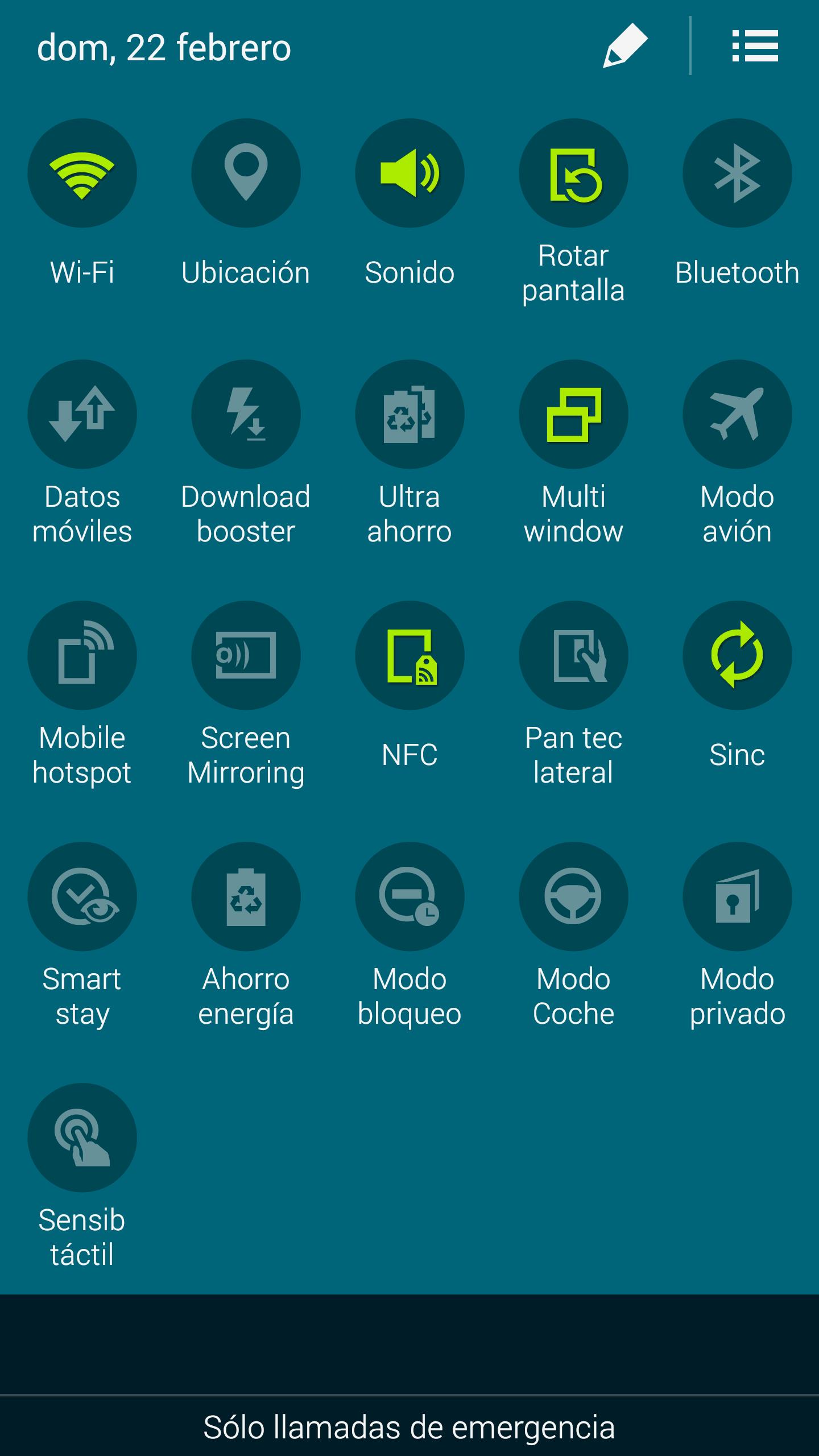 La barra de notificaciones muestra una primera fila de iconos circulares que nos dan acceso rápido a ciertos ajustes, y que se puede expandir para mostrar más de estos ajustes.