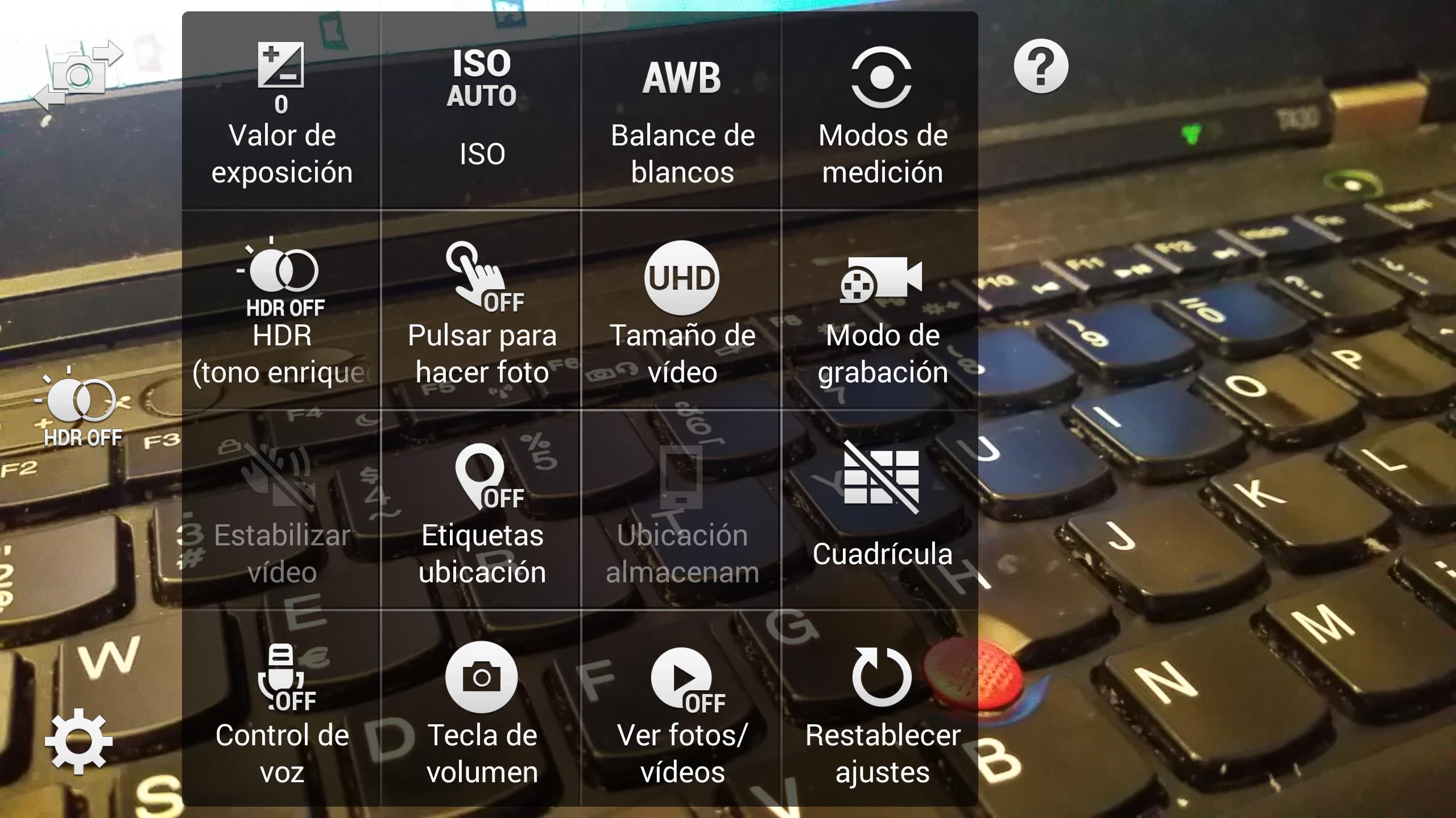 Samsung permite realizar algunos ajustes manuales sobre la cámara, como el ISO (Auto, 100, 200, 400 y 800), modo de medición (centro-compensando, matriz o punto), exposición (-2.0 a 2.0) y balance de blancos (auto, luz del día, nublado, incandescente y fluorescente).