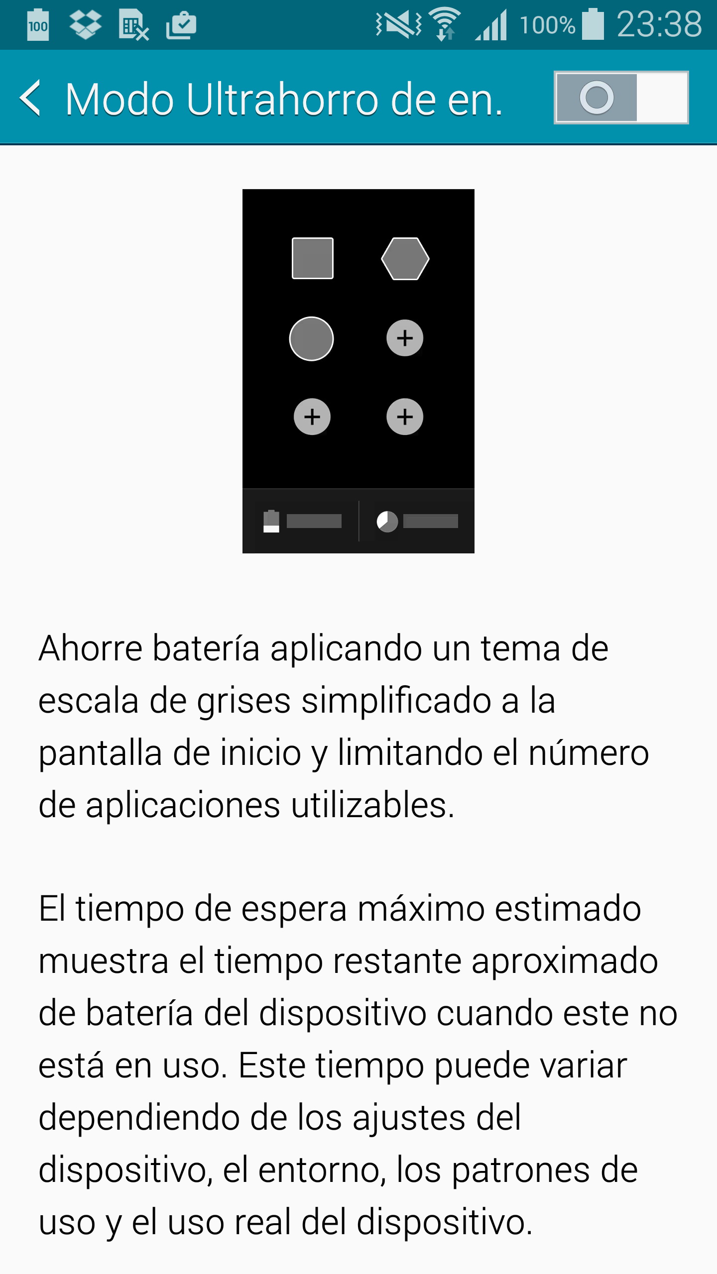 Lógicamente no se trata de un modo que uno quiera tener activo por defecto, pero resulta muy útil cuando estamos en los últimos minutos de autonomía y queremos mantener el teléfono activo durante unas horas.