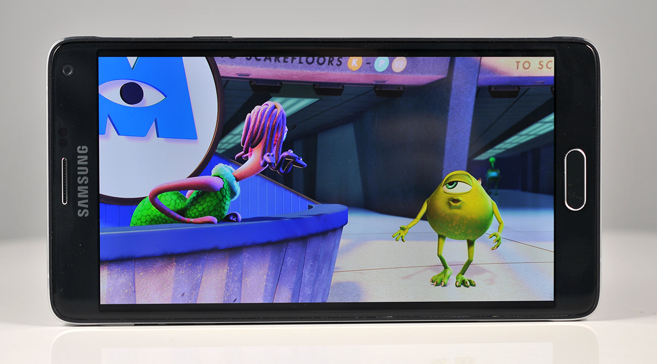 Por otro lado, Samsung ha dotado de un panel Super AMOLED al Galaxy Note 4 que proporciona colores vivos que parecen salirse de la pantalla y unos colores negros muy profundos, como es habitual en este tipo de pantallas. Aunque a simple vista es difícil notar la diferencia respecto a una pantalla LCD, en una habitación con poca luz la profundidad de los negros de las pantallas AMOLED saltan a la vista, sobre todo al ver películas.