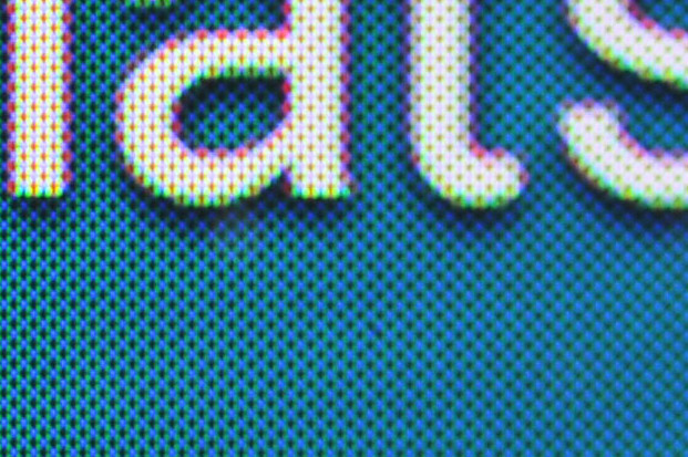 La matriz de sub-píxeles del Galaxy Note 4 no es RGB sino que es de tipo PenTile, como es habitual en los paneles AMOLED. A igualdad de resolución, este tipo de pantallas se ven menos nítidas que las RGB por la peculiar disposición de los sub-píxeles.