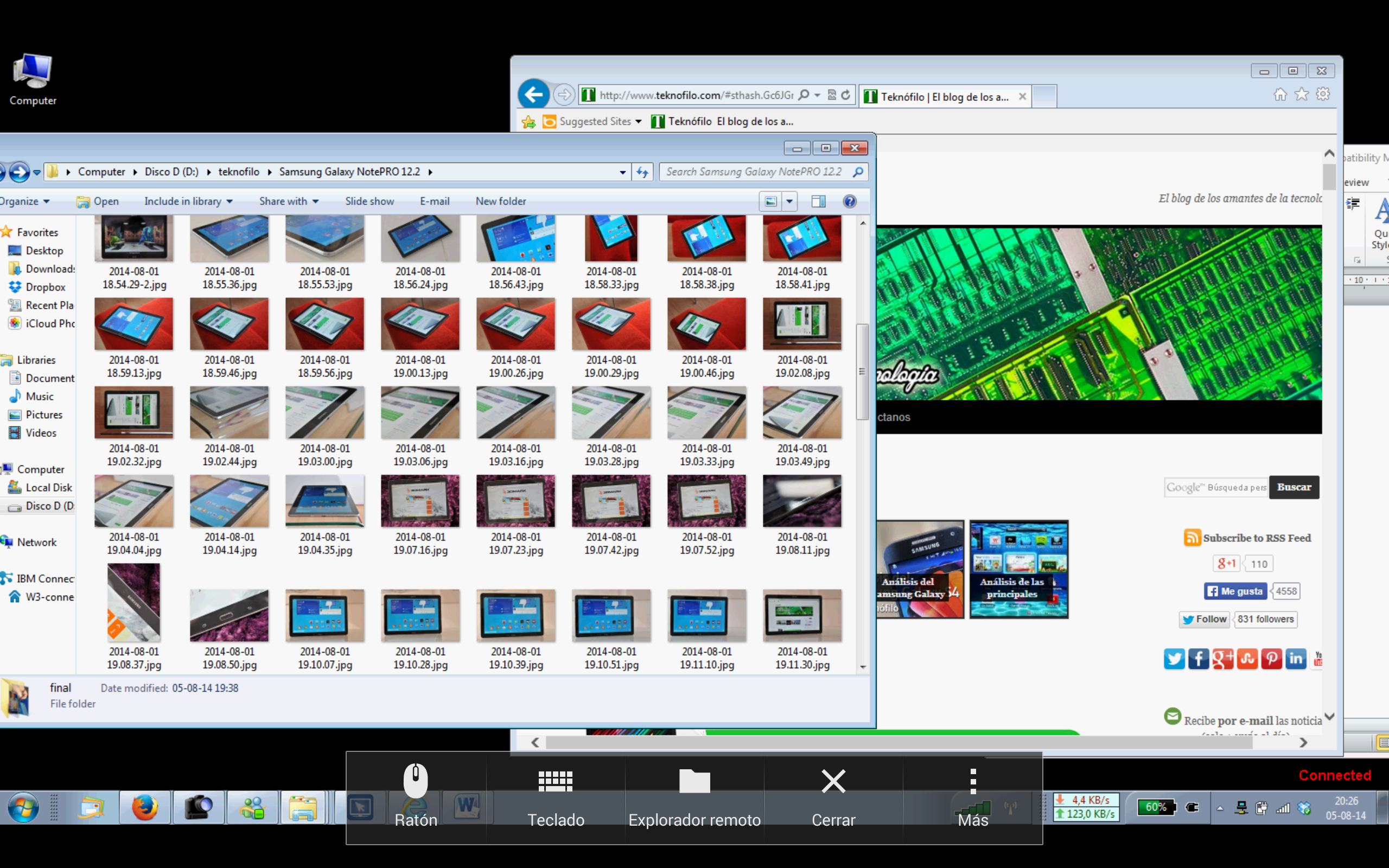 Aún con todo, otros tablets como el Galaxy Tab S poseen mejores ángulos de visión, tal y como se puede apreciar en la siguiente comparativa en la que la imagen del NotePRO pierde contraste al ser vista desde un ángulo extremo mientras que la del Galaxy Tab S se ve prácticamente perfecta.