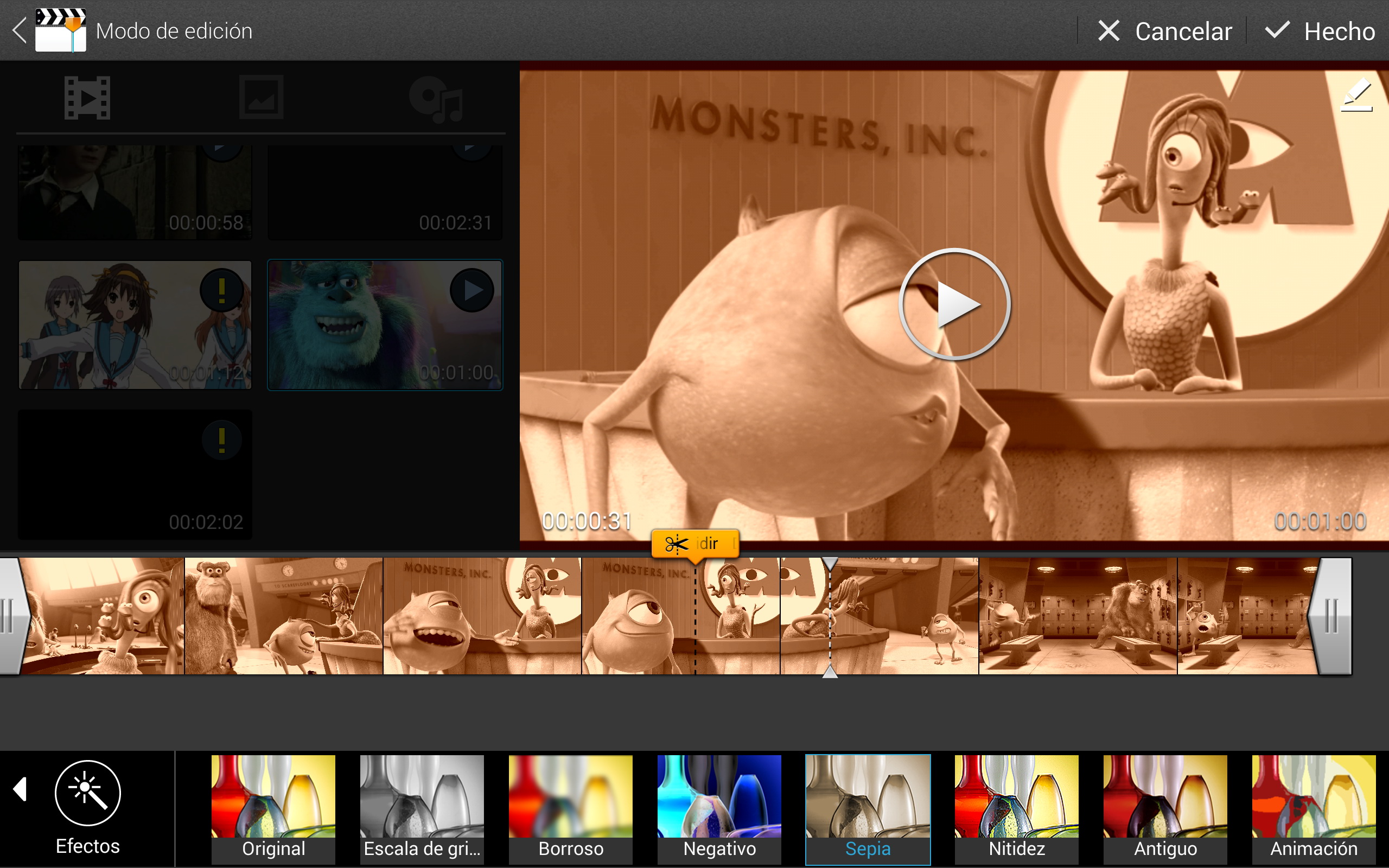 La aplicación es capaz de reproducir películas almacenadas en otros dispositivos conectados a la misma red Wi-Fi. Posee también un Editor de Vídeo con vistosos efectos, aunque la primera vez que se ejecuta se descarga de Internet.