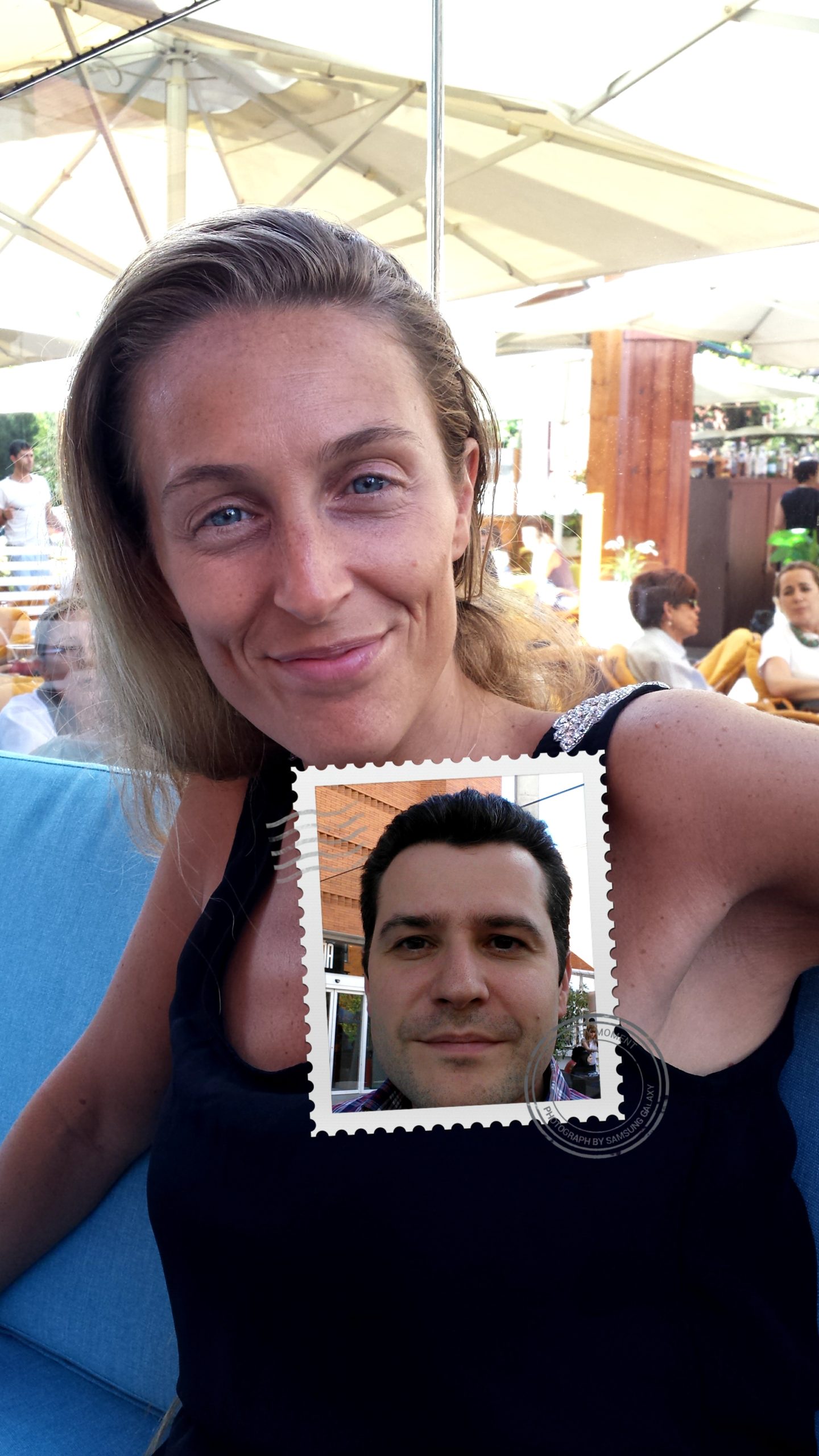 Otra funcionalidad curiosa que tiene el Galaxy S4 es la posibilidad de tomar una foto tanto con la cámara frontal como con la trasera, de forma que la imagen captada por la cámara frontal aparece en un recuadro en forma de sello (u otra forma). A pesar de que Samsung destacó esta funcionalidad en su presentación mundial del teléfono, no se nos ocurren demasiados usos prácticos. A continuación podemos ver un ejemplo.