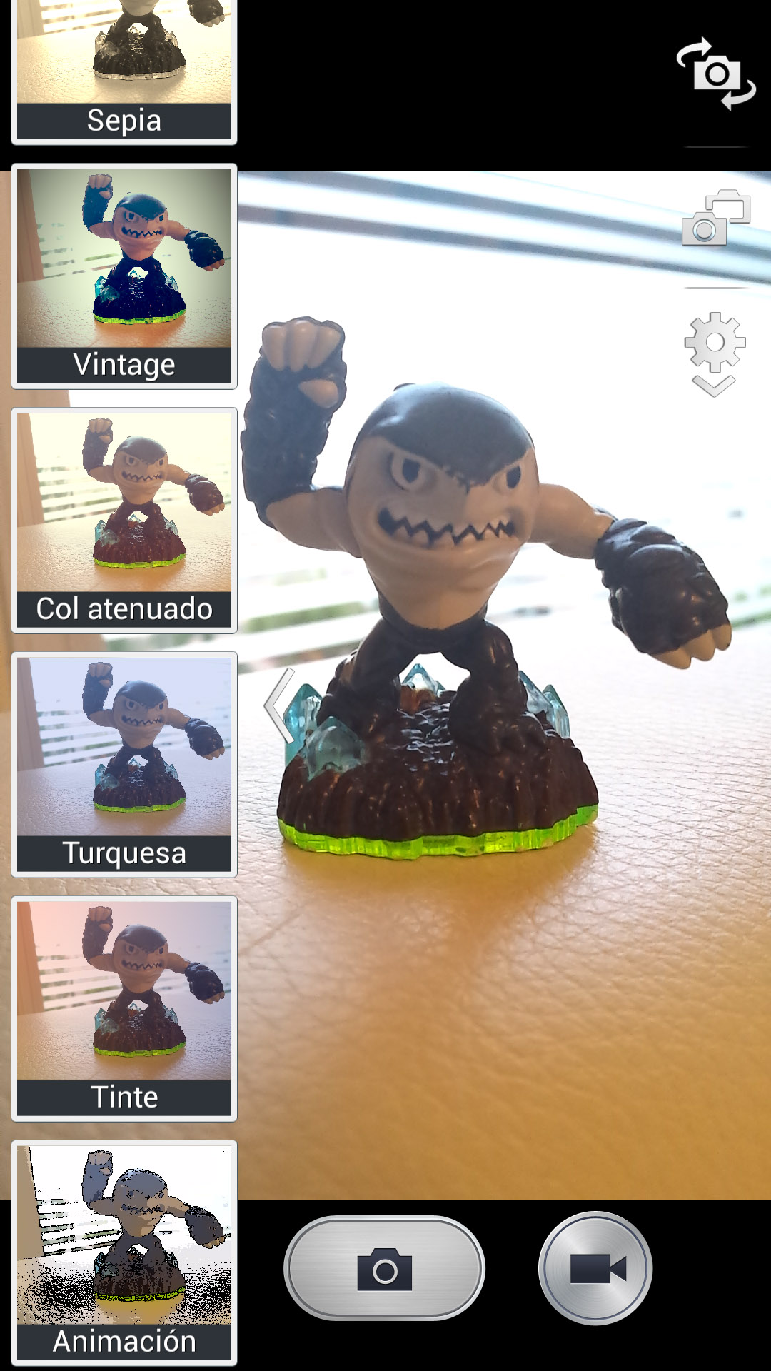 Aquí podemos ver otra comparativa con nuestra ya famosa figura de Skylanders donde se aprecia que el Samsung Galaxy S4 produce una buena calidad de imagen, aunque quizás ligeramente más borrosa que otras imágenes de la comparativa. En todo caso, podría ser debido a un ligero movimiento del teléfono al tomar la foto.