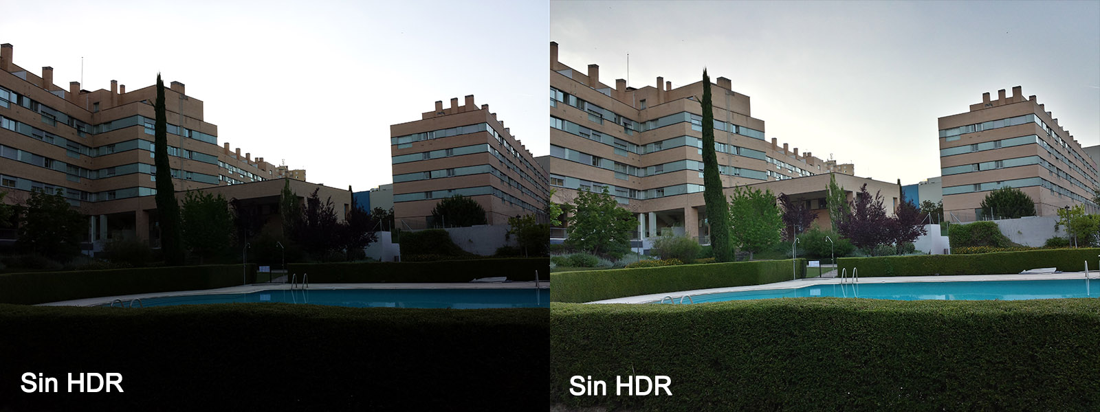 Aquí podemos ver otra comparativa entre una foto sin y con el modo HDR activado, que como ya sabemos permite apreciar simultáneamente las zonas claras y oscuras de una misma imagen mediante la combinación inteligente de varias tomas con distinta exposición. Es por tanto, un modo ideal para situaciones de contraluz o claroscuros.