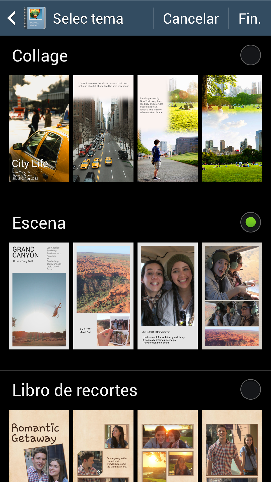 - Foto animada, que crea una imagen en la que se mueven los objetos que se seleccionan