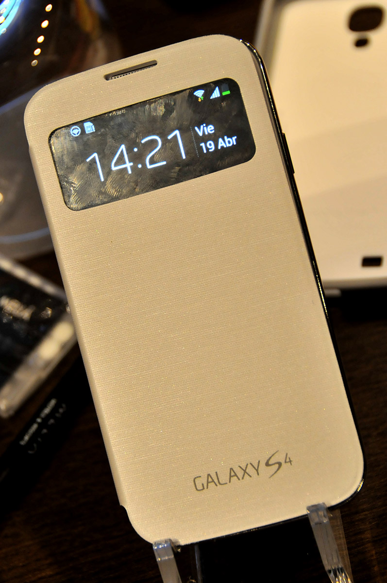 Samsung comercializa la funda activa S View (ver sección de Accesorios de este análisis) para el Samsung Galaxy S4, siendo posible desbloquear la pantalla automáticamente al abrir la tapa de la funda siempre que el bloqueo de seguridad esté deshabilitado.