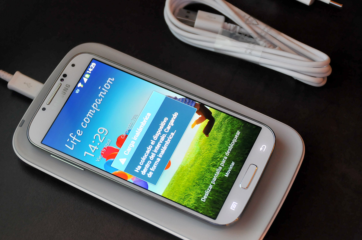 - Galaxy S4 cargándose sin cables