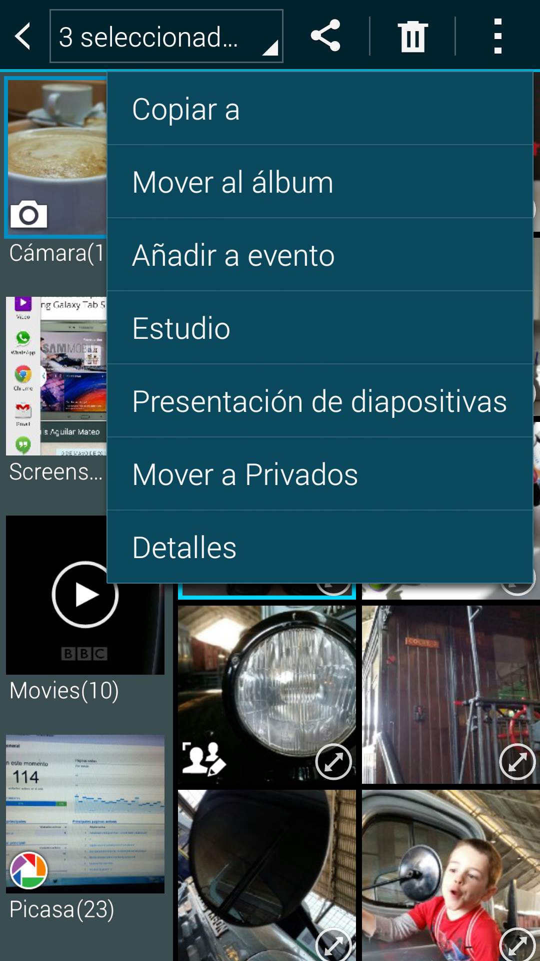 Samsung ha incorporado un Modo privado que permite que ciertos contenidos como imágenes y documentos solo estén disponibles cuando accedemos a este modo. En la captura de pantalla adjunta se puede ver cómo se añaden imágenes al modo privado.