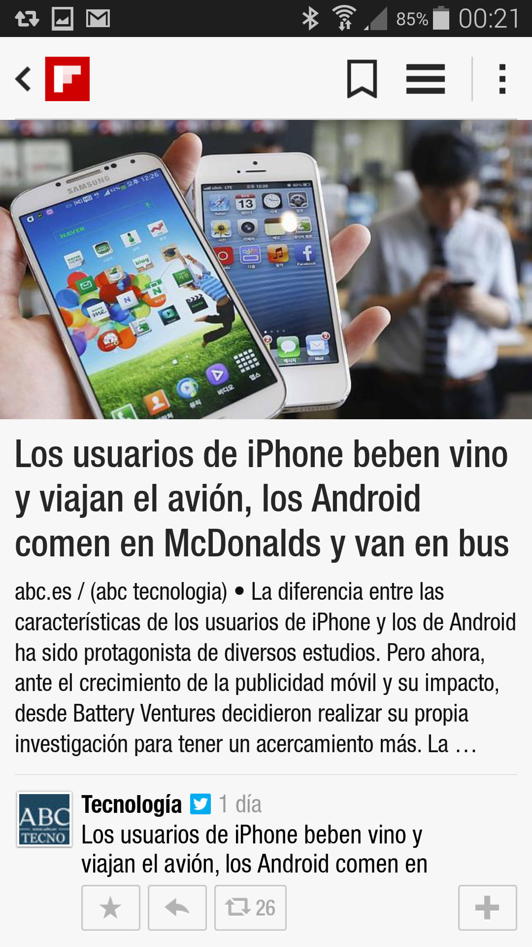 Los temas no son muy específicos, por lo que si seleccionas deportes recibirás noticias de todo tipo de deportes, incluso de aquellos que no sigues. Por suerte al pulsar sobre alguno de estos contenidos accedes a la propia aplicación Flipboard, cuyas opciones de personalización son muy superiores.