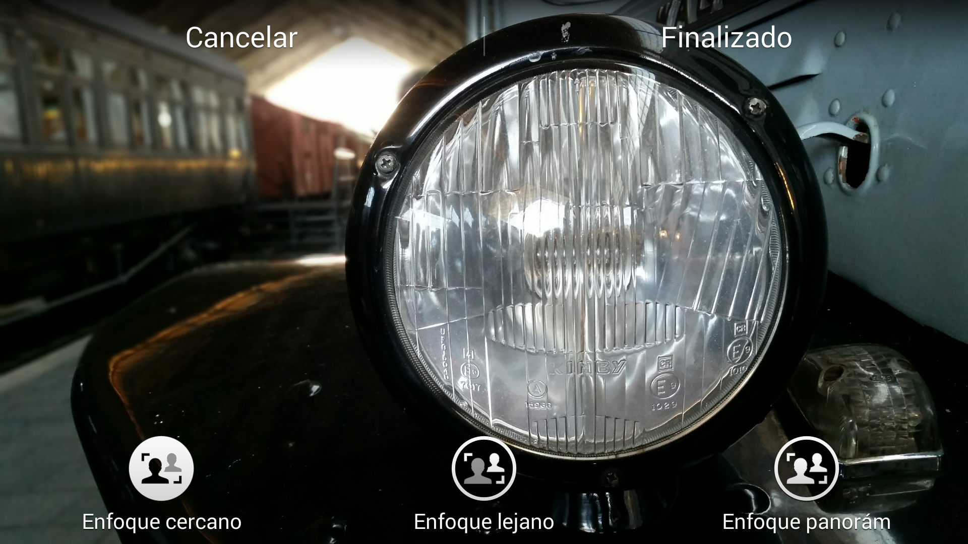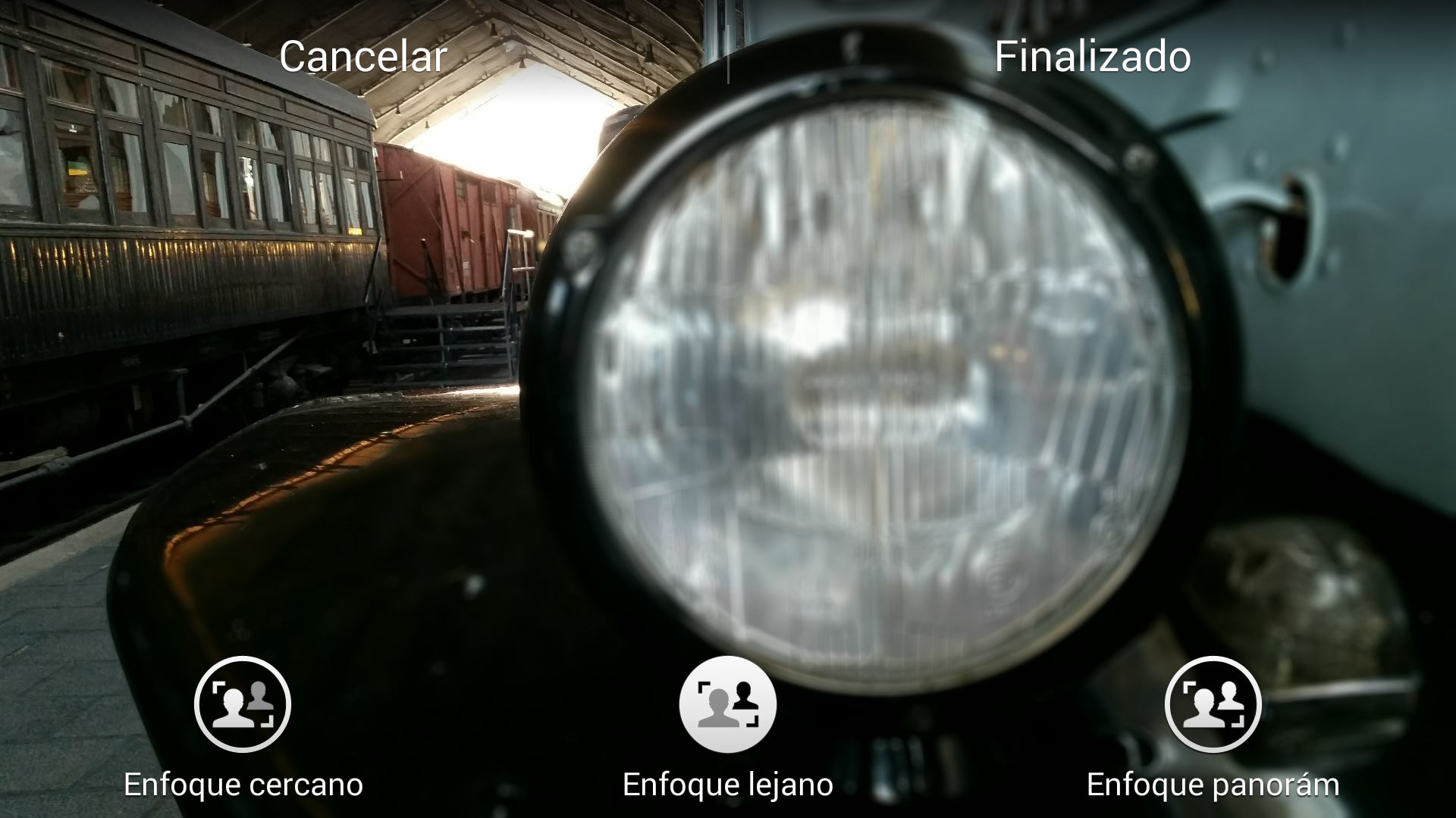 A continuación podemos ver una imagen tomada con el modo Enfoque selectivo, y cómo podemos elegir entre el enfoque cercano (faro del coche), enfoque lejano (trenes del fondo) o enfoque panorámico.