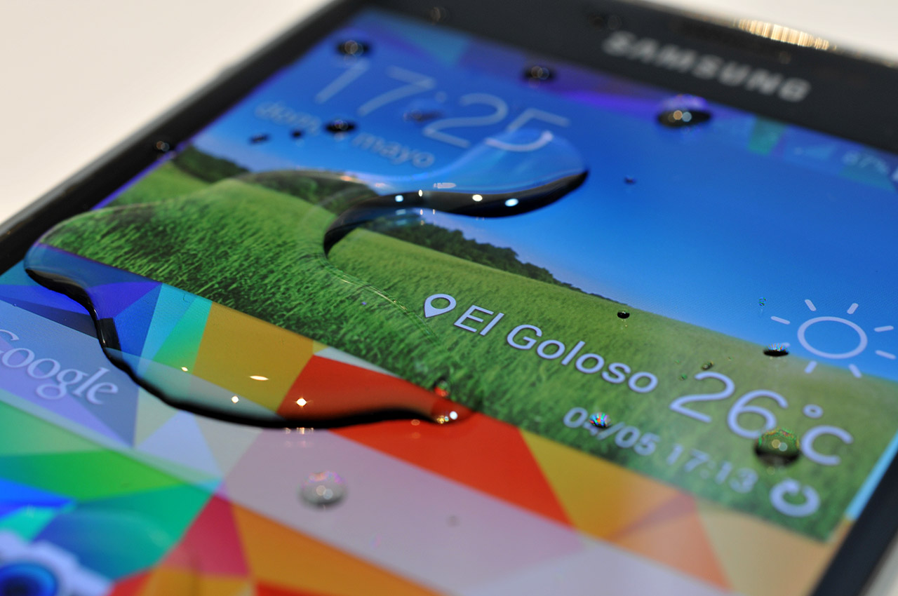 Se trata de un nivel de sellado algo inferior al del Sony Xperia Z2, que posee certificación IP58. De hecho Samsung afirma que el teléfono está protegido frente a sudor, lluvia y líquidos, pero no hace publicidad de que sea sumergible.